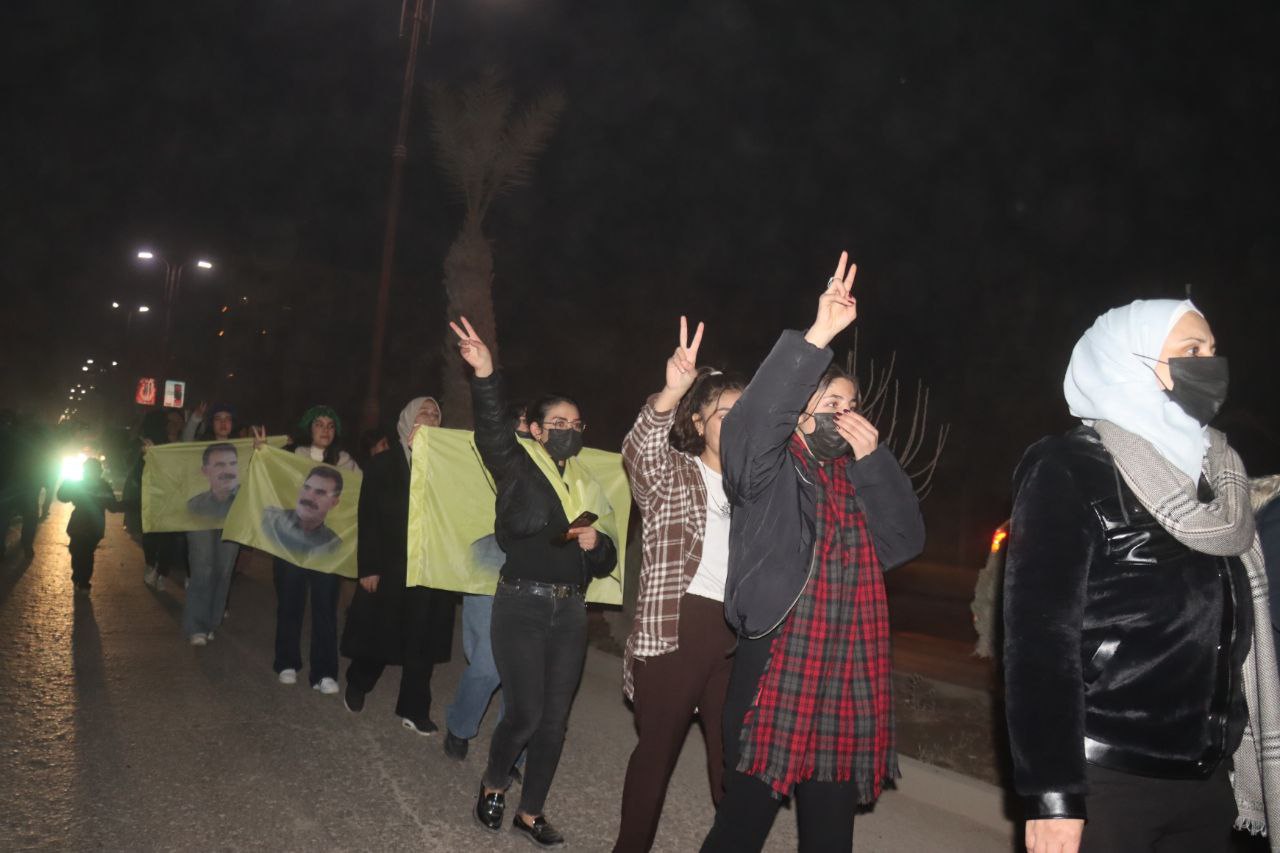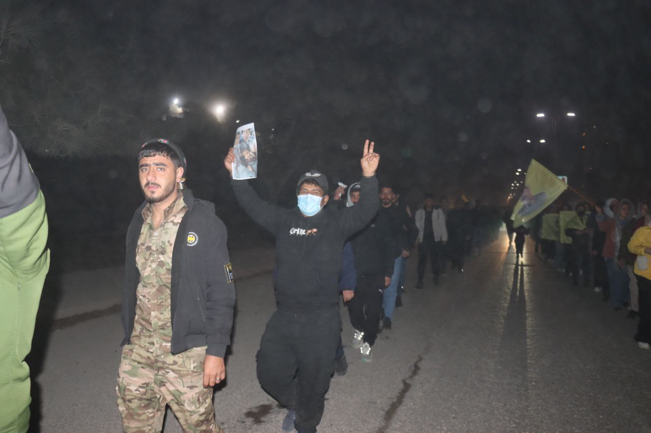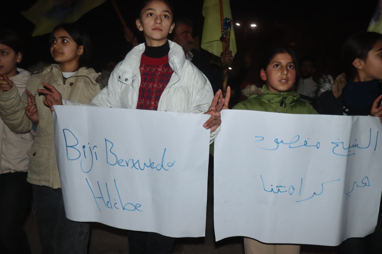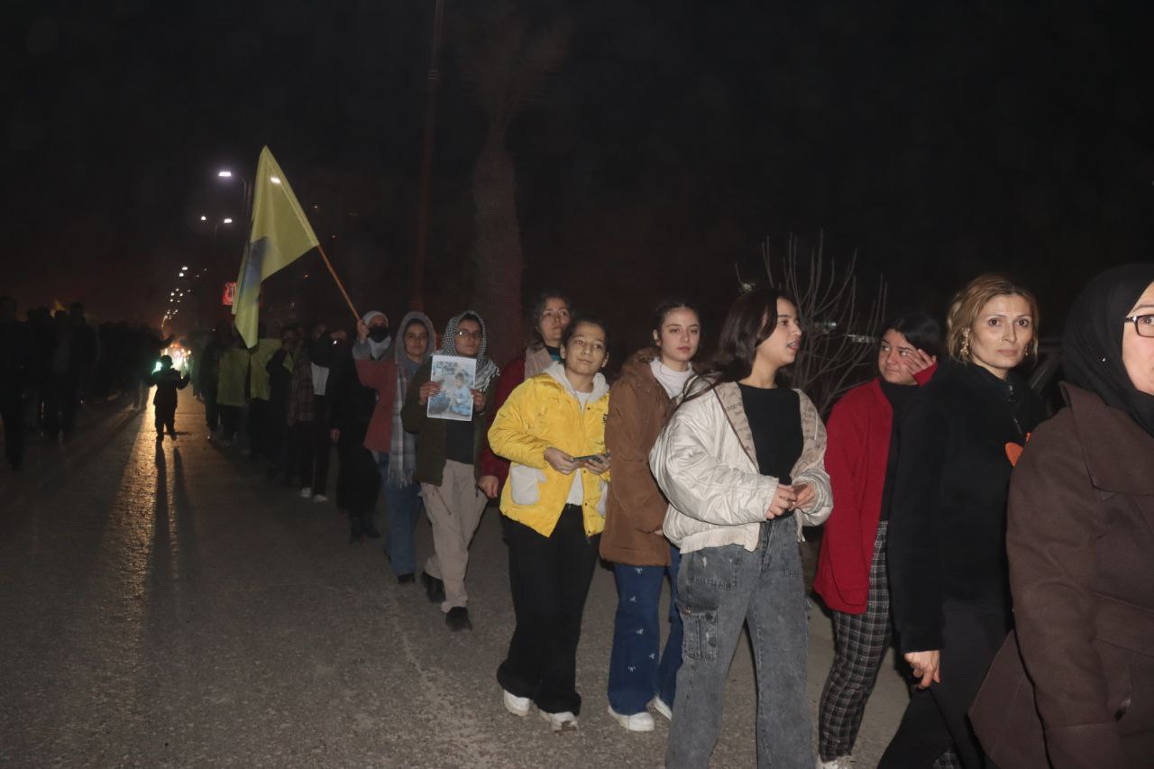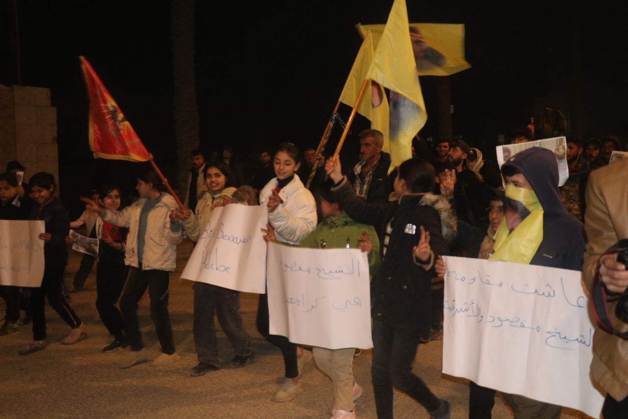 REQA – Îro êvarê, 7’ê Çile, Yekîtiya jinên Ciwan û Tevgera Ciwanên Şoreşger li Reqayê meşek hevgirtinê bi niştecihên taxên Şêx Meqsûd û Eşrefiyê re lidar xistin. Meş ji Nexweşxaneya Leşkerî dest pê kir û ber bi Qada Jina azad ve çû.