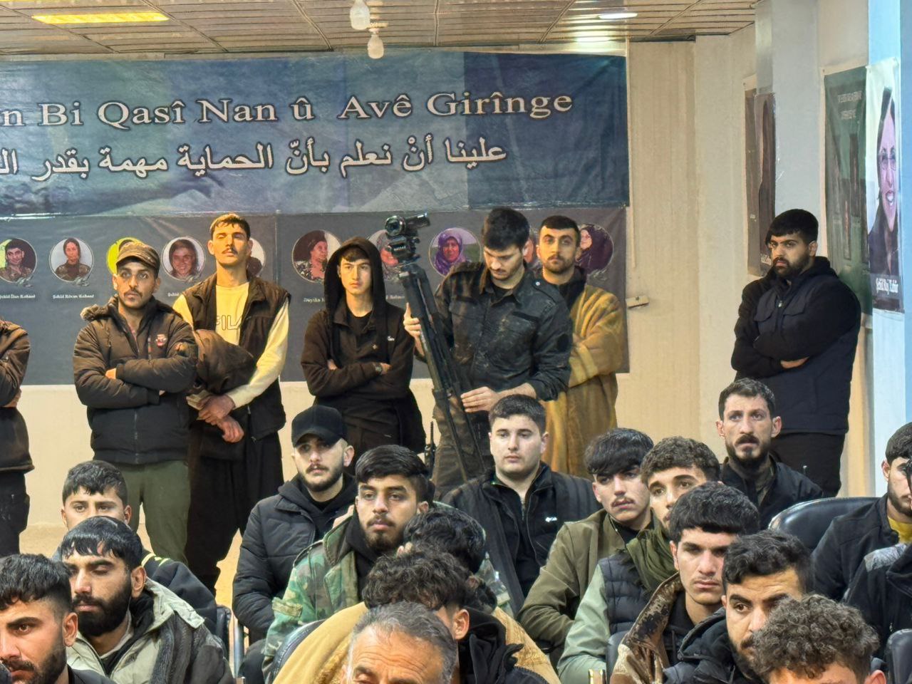NAVENDA NÛÇEYAN – Endamên Tevgera Ciwanên Şoreşger li Bakur û Rojhilatê Sûriyeyê civînek awarte li dar xistin û biryar dan ku tevlî refên xweparastinê li dijî erişên HTŞ (Heyat Tehrîr El Şam), DAIŞ û çeteyên ku ji aliyê dewleta Tirkiyeyê ve bibin. Di civînê de berxwedana mezin a ku li taxên Şexmeqsûd û Eşrefiyê, bi taybetî li dijî êrîşên dewleta Tirk û çeteyên wê hatiye nîşandan hate bibîrxistin. Wekî sembola vê berxwedanê, di civîna bîranîna şehîdan de hate tekez kirin ku berxwedana li her du taxan divê ji bo têkoşîna îroyîn îlham be. Ciwanan diyar kirin ku li gorî biryara ku hatiye girtin, ew ê tevlî refên parastina cevherî bibin û axa xwe biparêzin. Gelek ciwanan diyar kirin ku ew vê têkoşînê wekî mîrateya ku şehîdan hiştine dibînin.