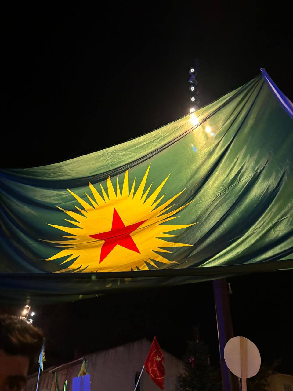 • Pankartek Bi Nivîsa “Rojava Biparêze” Li Ser Avahiya Ku Peymana Lozanê Lê Hatiye Imzekirin Hate Daliqandin