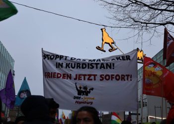 HAMBURG – Bi hezaran Kurd li ser Mönckebergstraße ya Hamburgê li hev civiyan da ku êrîşên Meclîsa Gel a Demokratîk a Kurd (DKHM), HTŞ û milîsên ku ji aliyê Tirkiyeyê ve tên piştgirîkirin li ser Rojava û Bakurê Rojhilatê Sûriyeyê şermezar bikin. Di xwepêşandanê de ku bi hezaran kes beşdar bûn, endamên Meclîsa Jinan a Rojbîn, TCŞ (Tevgera Ciwanên Şoreşger), TekoJIN (Jinên Ciwan ên Şoreşger), enternasyonalîstên Alman, rêxistinên jinan ên çepgir û sosyalîst û Kurd hebûn.