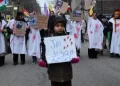 Di meşê de, ji bo balkişandina ser komkujiyên ku ji aliyê çeteyên HTS ve li Rojava hatine kirin, pêşandaneke şanoyî bi pêşengiya endamên TekoJIN hate pêşkêşkirin. Beşdaran kincên werzîşê li xwe kirin ku destên xwînî li ser qumaşên spî nîşan didan, ev yek jî mezinahiya êrîşan nîşan dida.