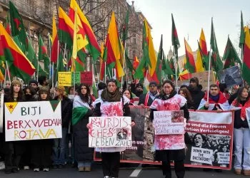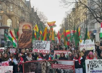 FRANKFURT – Kolanên Frankfurtê, Almanya, bi hêrsa deh hezaran kesan li dijî êrîşên hovane yên li ser şoreşa Rojava deng veda. Bi deh hezaran kes beşdarî xwepêşandana girseyî bûn ku ji aliyê Tevgera Ciwanên Şoreşger (TCŞ), Jinên Ciwanên Têkoşer (TekoJIN), YJK-E, Federasyona Kawa û gelek rêxistinên din ên Kurd ve hate organîzekirin.