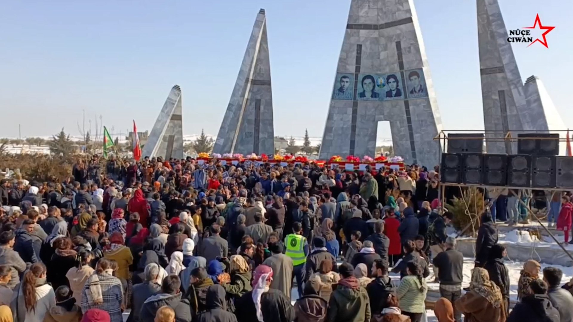 KOBANÊ – Li Goristana Şehîd Dicle ya Kobanê, 16 şehîdên ku li bajarê Reqa û li Girtîgeha Eqtan hatin dorpêçkirin û şehîd bûn, di nav de endamên tevgera ciwanan Brûsk Heleb û Karker Qamişlo, bi merasînekî girseyî hatin oxir kirin.
