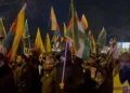 Girseyê ku bi alayên YPG, YPJ û TEV-DEM meşiyan, ji aliyê mirovên derdor û esnafan ve bi alkîş û sloganên piştgiriyê hat pêşwazîkirin.