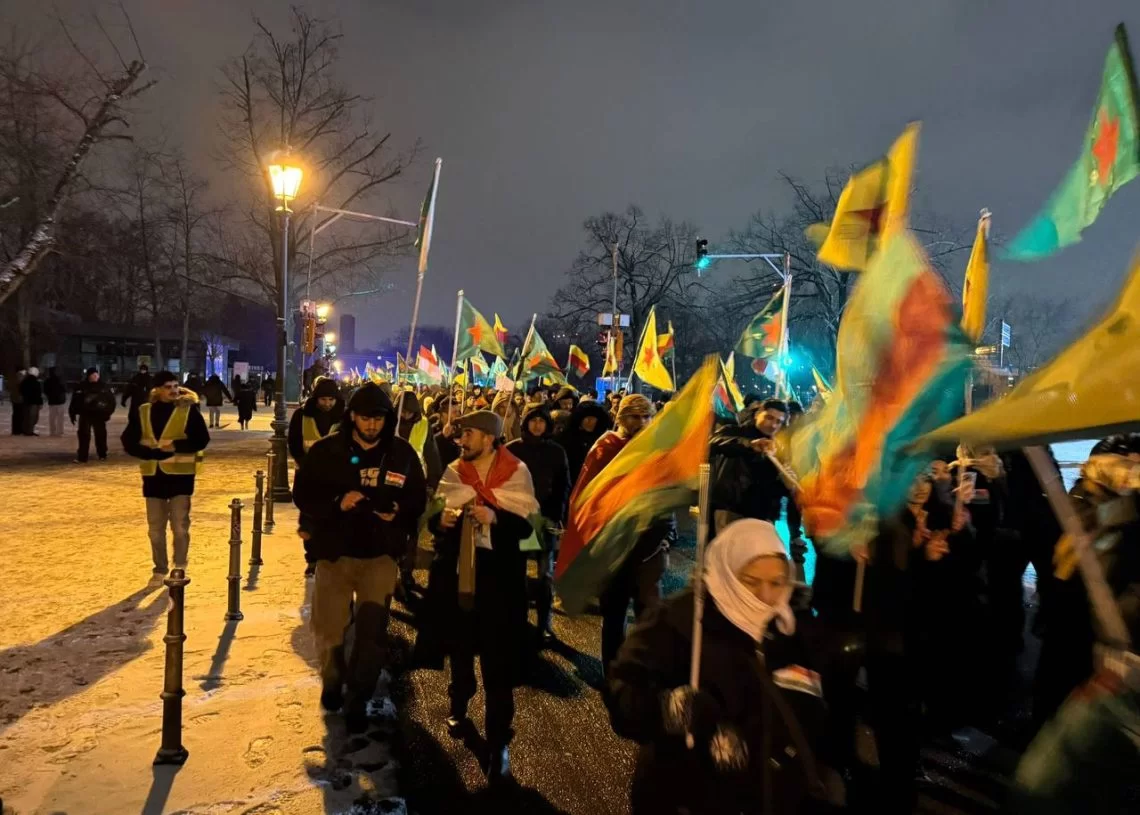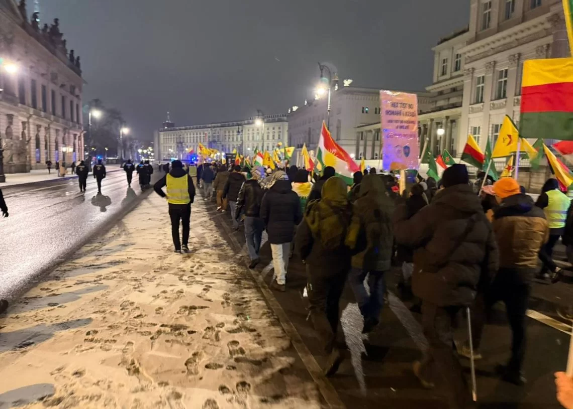 Li paytexta Berlînê, li dijî êrîşên komên çekdar ên girêdayî Hikûmeta Demkî ya Sûriyê ku Rojavayê hedef digirin, Kurdistanî û hevalên wan bi hev re hatin cem kirin û çalakiyeke protestoyê lidarxistin.