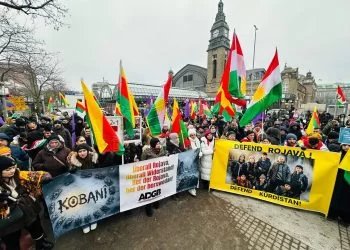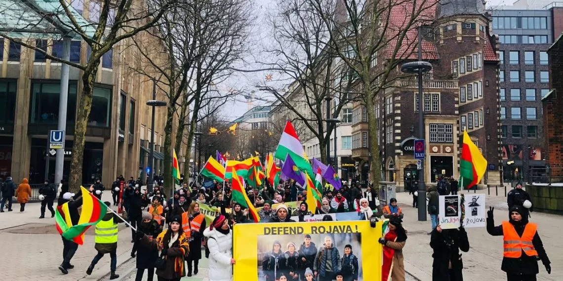 Platforma Hevgirtina Hamburgê bi Rojava re meşek mezin li dar xist ji bo protestokirina êrîşên HTŞ û milîsên ku ji aliyê Tirkiyeyê ve tên piştgirîkirin ên li dijî Rojava û Bakurê Rojhilatê Sûriyeyê.