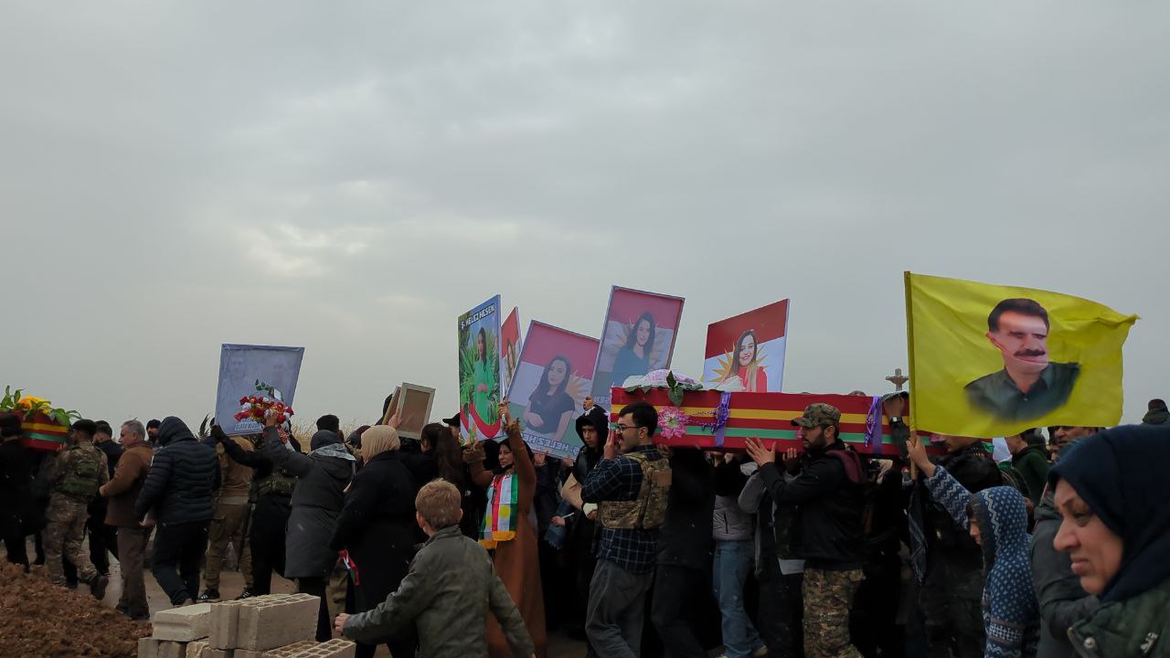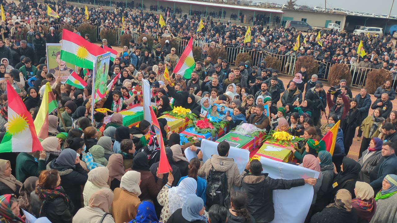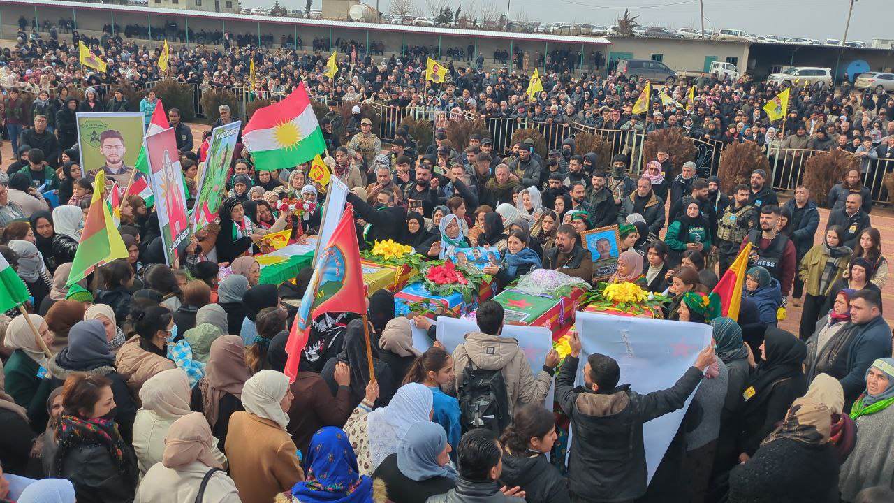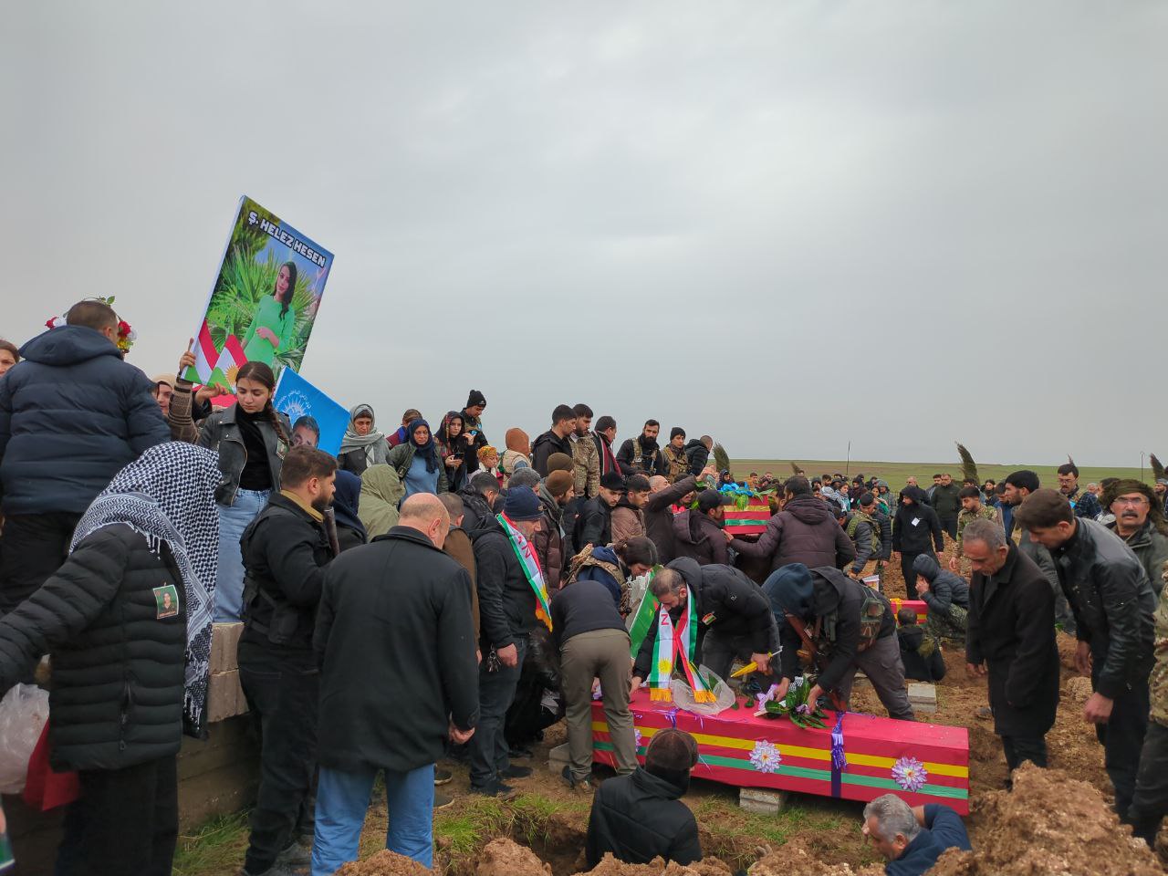 DÊRIK – Bi sedan şêniyên bajarên Dêrik û Girkê Legê cenazeyên şehîdên Hêzên Sûriyeya Demokratîk (QSD), Hêzên Ewlekariya Hundirîn (Asayîş) û Yekîneyên Parastina Jin (YPJ) li Pakrewangeha Şehîd Xebat Dêrik spartin axê.
