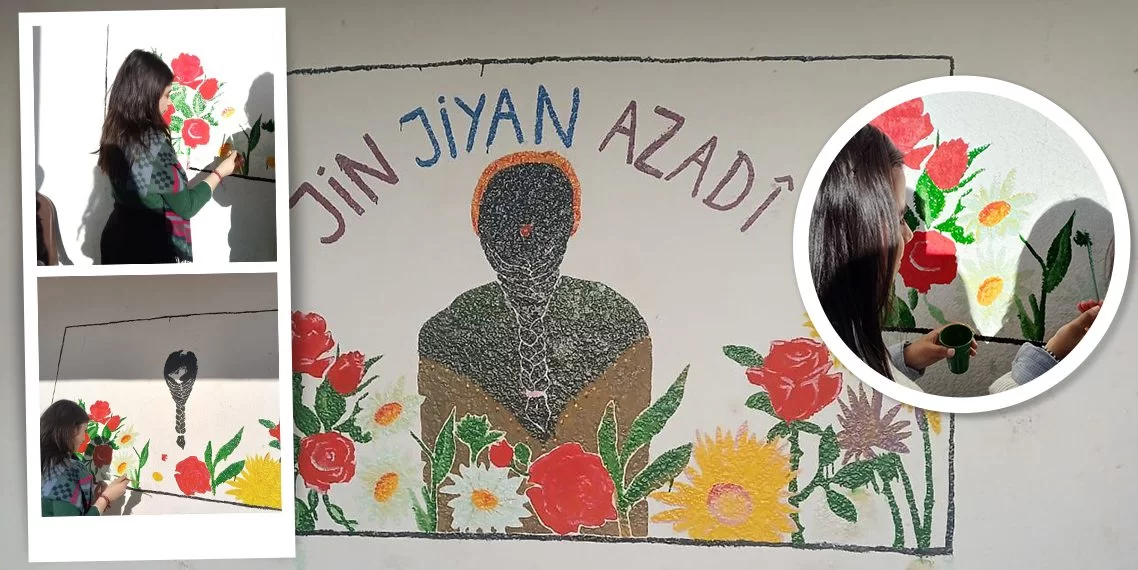 DÊRÎK – Yekîtiya Jinên Ciwan a Dêrikê Kezî (Bîçek), ku sembola berxwedana Rojava ye, li ser dîwarên gelek deverên bajêr boyax kir.