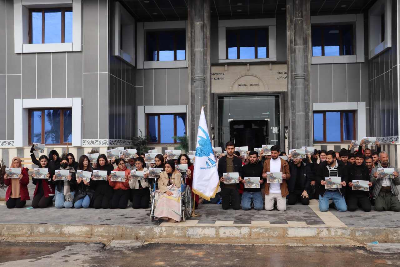 Di daxuyanî de êrîşên çeteyan hatin şermezar kirin, û hat diyar kirin kû Zanîngeha Kobanê wê hemû alîkarî bide xwendekara birîndar da ku xwendina xwe berdewam bike. Her wiha, banga saziyên navnetewî û rêxistinên mafên mirovan kirin da ku bi erkê xwe rabin, mudaxale bikin û êrîşan bidin sekinandin. Daxuyanî bi zimanên kurdî û erebî hat dayîn.