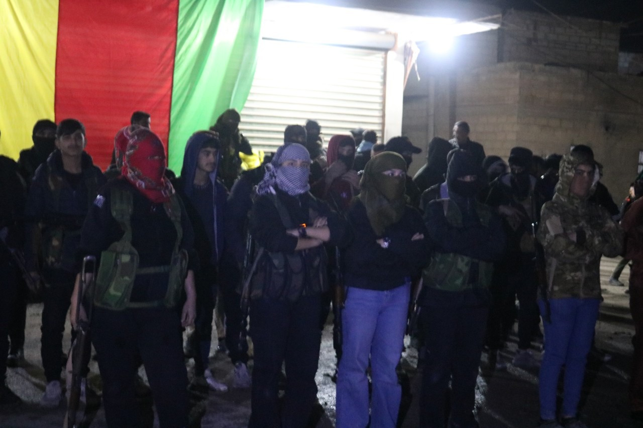Hêlîn Zagros di çalakiyê de axivî û got, “Di serî de em kompiloya 15 siba ê ya ku li ser Rêbertiya me hatiye kirin nelet dikin. Kompiloya ku di şexsê Rêbertî de xwestin Tevgera Azadiyê u gelê kurd bi qirkirin u îmhayê re rû bi rû bihêlin. Îro weke gelê bakur û rojhilatê sûriyê em bi kompiloyekî nû ya îmha û tesfiyê re ru bi rû ne. Di serî bi êrîş ên ku ser helebê hatin kirin armanc dubarekirina kompiloya ku di şexsê rêbertî de dixwestin bigihînin encamê. Bi nirxandina Rêbertî ya ku got li ser rojava kompiloyeki mezin tê kirin. Armanca vê kompiloyê tunkirin u tesfiyekirina şoreşa rojava û ji holê rakirina destkeftiyên gel herêmê heman demê de bi awayekî fermî û bi wehşiyetekî mezin êrîş ser pirojeya serokatiye di vê derbarê de ji bo serxistina vê armancî dijmin hemû rê û rêbazan pêk tîne. Ji bo şikandina iradeya gel li ser bajarê kobanê dorpêç berdewam dike. Hewildana komkojiyan li herêmê zêde dikin li ser vî esasî di serî de weke gelê taxa mifdî û dahiyê yê bajarê hesekê em bi hemû hêza xwedi destpêkê de ji bo vala derxistina kompiloya ser rêber apo heman demê de vala derxistina kompiloya ku li ser şoreşa rojava xwe dûbare dike emê bi hemû hêza xwe tekoş în bikin. Serbikevin emê li ser esasê parastina rawa heya nefesa dawî taxên xwe û destkeftiyên şoreşa xwe biparêzin bi berxwedaniya xwe bi esas girtina fikir û ramanên Rêber Apo emê serkeftinê misoger bikin.