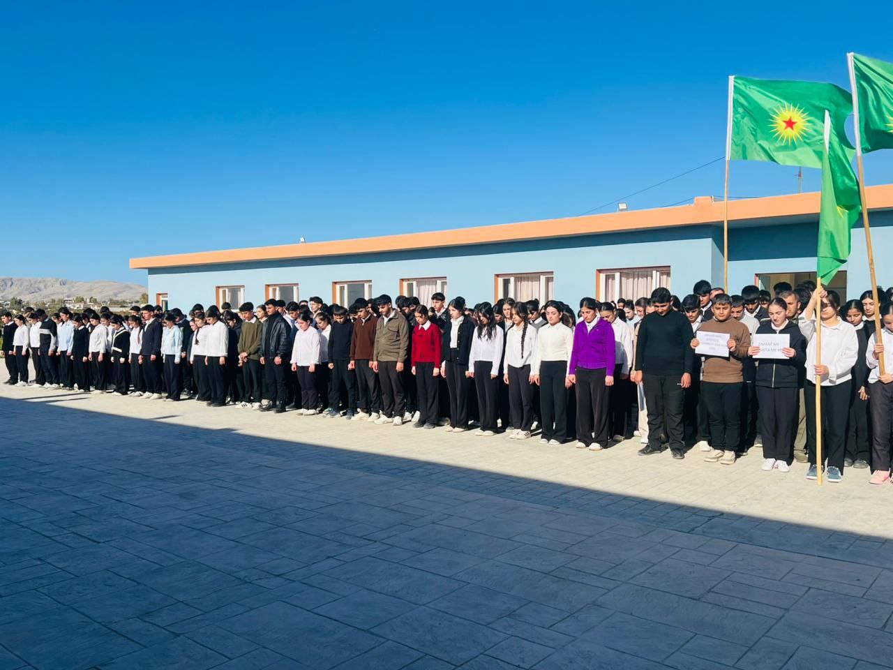 Beriya daxuyanî were xwendin ji bo tevahî şehîdên azadiya Kurdistanê deqeyek rêz hat girtin. Piştî rêzgirtinê ji aliyê xwendevana bi navê Sosin Bayar ve daxuyanî hate xwendin.