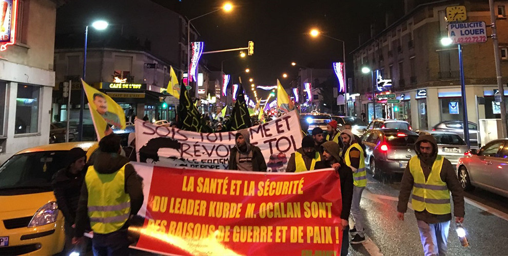 Li Parîsê li banliyoya Drancyê ji bo balkişandina tecrîda li ser Rêberê Gelê Kurd Abdullah Ocalan bi pêşengiya Ciwanên Azad û Jinên Ciwan ên Azad meş û mîtîngek hate lidarxistin.