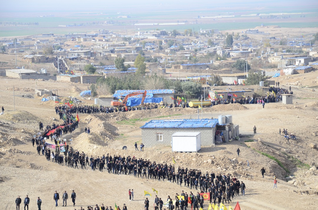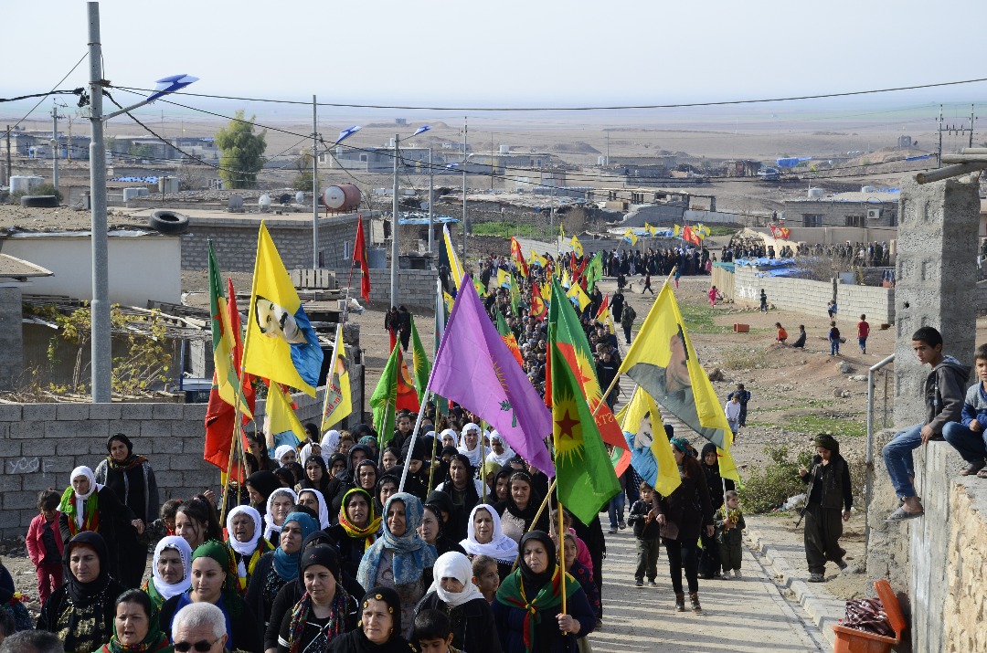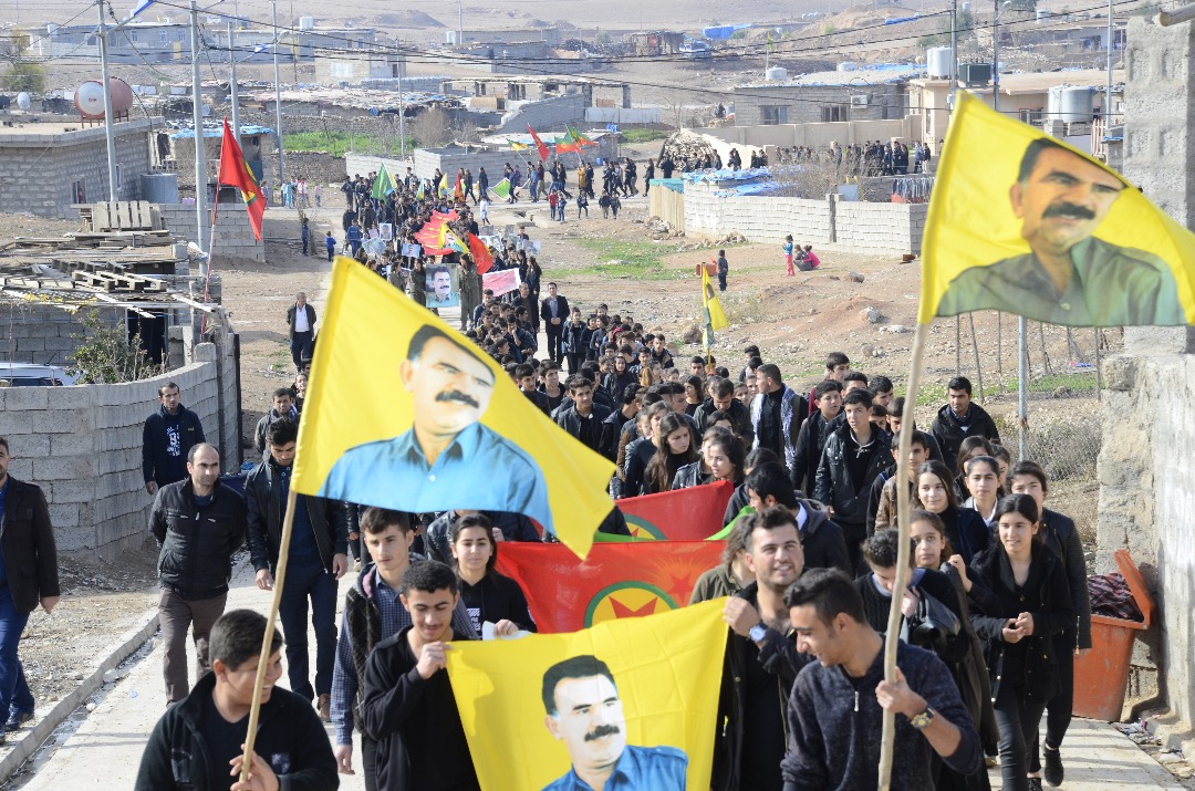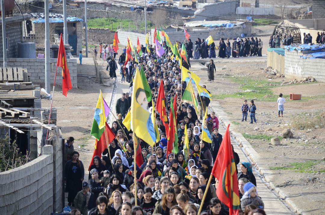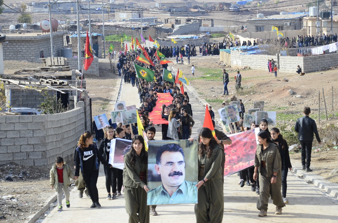 Di meşê de tevahî meşvanên wargehê ji heft salî heya heftê salî bi cil û bergên reş bi al û posterên Rêberê gelan  Abdullah Öcalan û alên PKK-KCK’ê tevlî meşêbûn. Meşvanan bi afîşên ‘Azadiya Rêber Apo,Azadiya Gelane’, ‘Rêberê Me Îradeya meya Sîyasiye’  û bi sloganên ‘Bijî berxwedana Îmraliyê’ ,’Kesek Nikare Roja Me Tarî Bike’  qîrkirin û  bi van dirûşmeyan jî li diji komployê helwesta xwe dan nişan kirin.