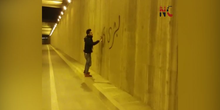 Hewlêr – Ciwanên Yekitiya Ciwanên Rojava (YCR) li Hewlêre çalakaiyê nîvis li tûnelê serêke yê Hewlêre. Ciwanên nivîsek bi slogana ‘bijî berxwedana Efrînê’ nivisand.