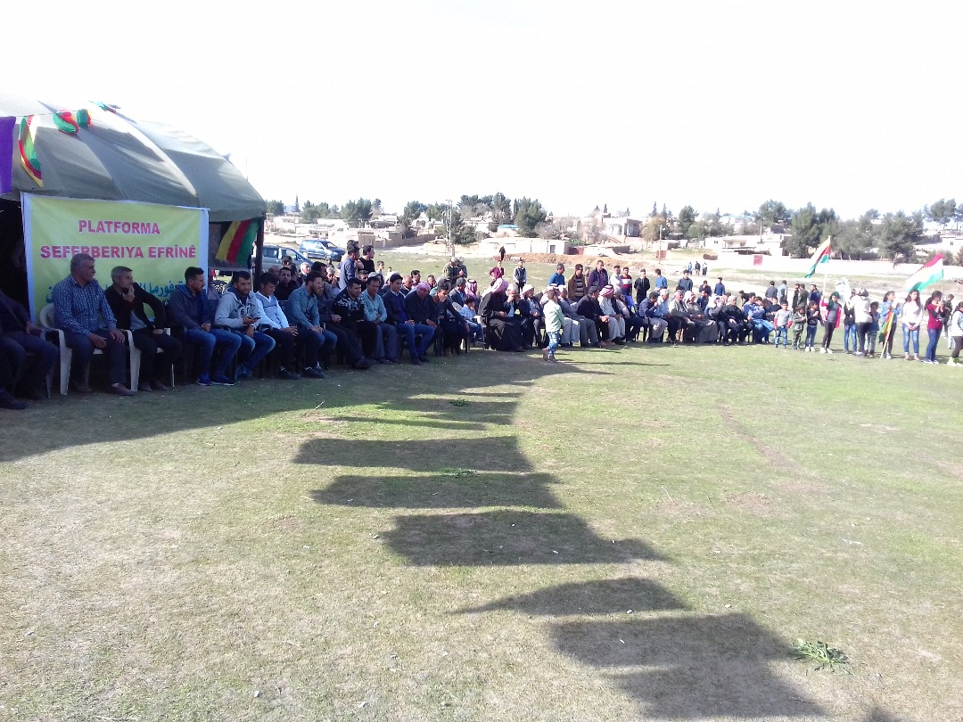 DERÎK- Li Derîk’ê peşengtiya Yekîtiya Ciwanên Rojava (YCR) û Yekîtiya Jinên Ciwan da konê ciwanan ket roja 5 emin. İro ciwanan ji bo berxwedana Efrîn’e konê xwe birin gundê Til Xenzir. 37 gundê Derikê de bi sedan ciwan û gel tevli çalakiya konê bu. Çalakî da cih bi cih stran hat gohdar kirin, sloganên ‘’ Bijî Berxwedana Efrîn’ê û Serî Hilde ’’ hat avetin. Çalakiyê da Rengê Zarokên kurd pir derket peş.