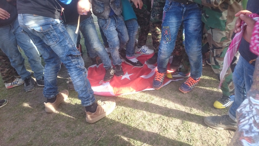 Piştê axaftinan, Ciwanan ji bo şermezar kirina işgala Dewleta Tirk a ser Efrîn’ê ala Dewleta Tirk şewitandin.