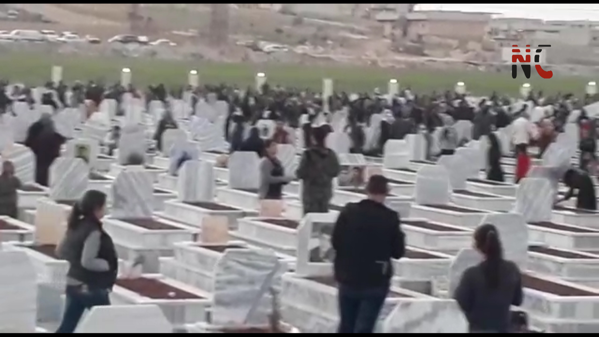 KOBANÊ – Li Kobanê li Goristana Şehîd Dicle Gel kom bun û meşale hat pexist ji bo berxwedana Efrînê.