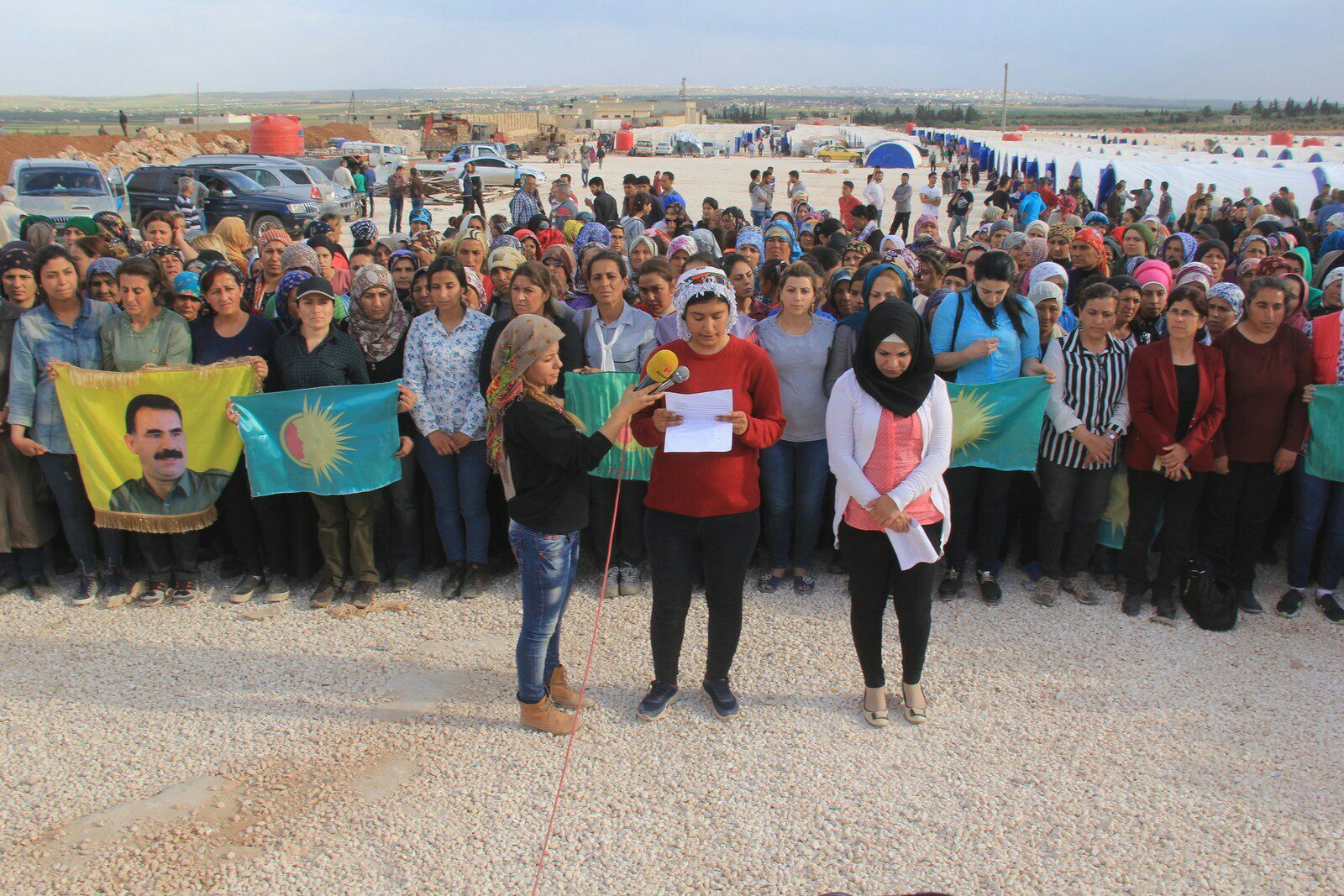 Bi xeteriya komkujiyên hîn mezintir rû bi rû, em di 18`ê Adarê de weke nêzîkî 200 hezarên şeniyên Efrînê mecbur mane ku ji warê xwe derbikevin. Ji vê demê vê em di bin şert û mercên giran de– bê alîkarî û ewlekariya saziyên navnetewî – li herêma Şehbayê jiyan dikin û berxwedana xwe didomînin. Em bi biryarin ku em berxwedan û tekoşîna xwe bilind bikin heta em Efrînê ji dagirkeriya faşîst û tecawza dewleta Tirk rizgar bikin. Bi vê armancê em daxuyaniya qonaxa 2 mîn ya pêngava ‘Jin rabin ser piyan ji bo Efrînê’ didin.