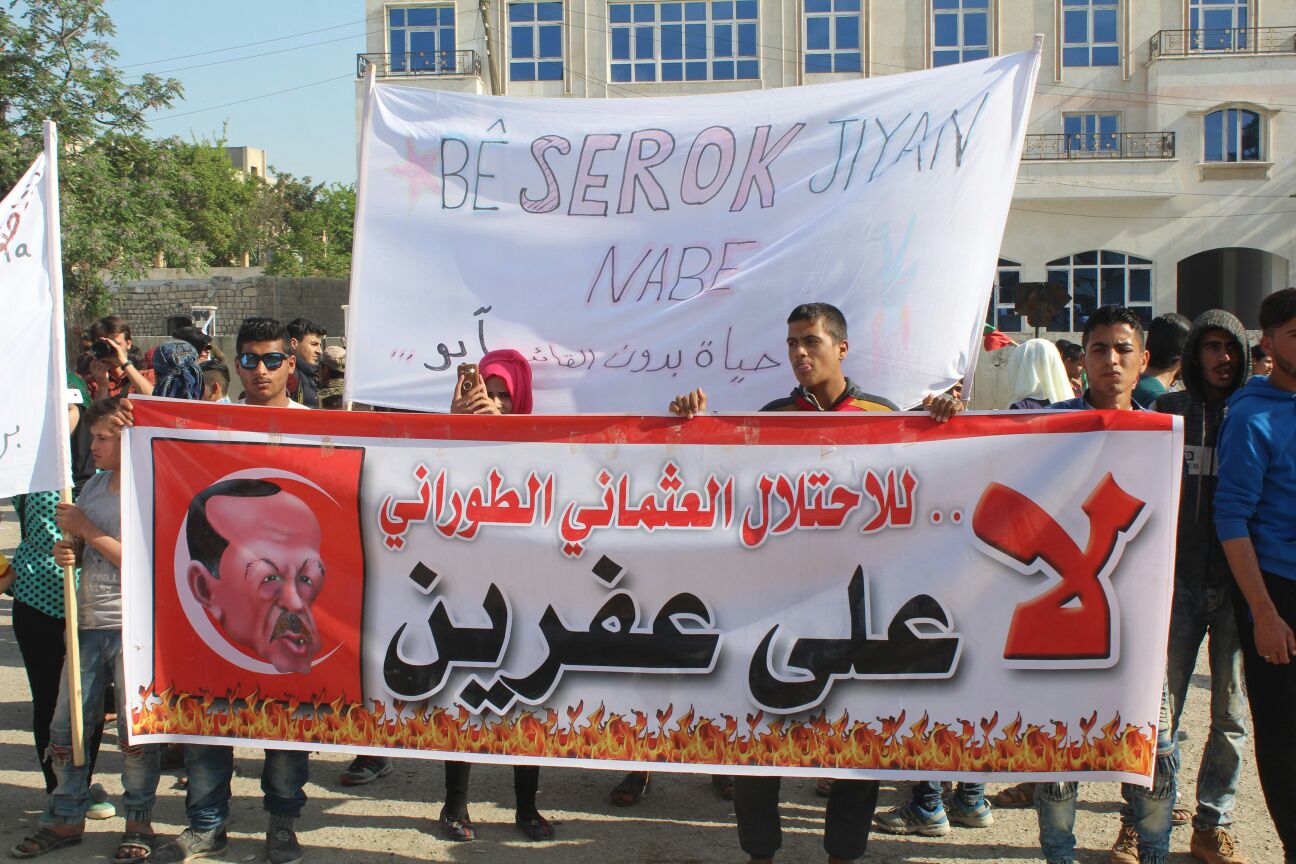 Meş bi dirûşmeyên ʺBijî berxwedana Efrînêʺ bi dawî bû.