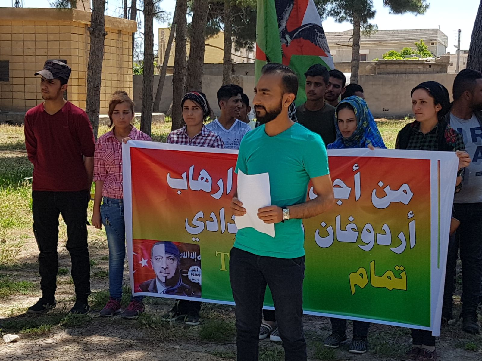 Daxuyaniya ji aliyê endamê YCR’ê Basil El-Seyad li pêşiya navenda ciwanên Girê Sipî ve hate xwendin.