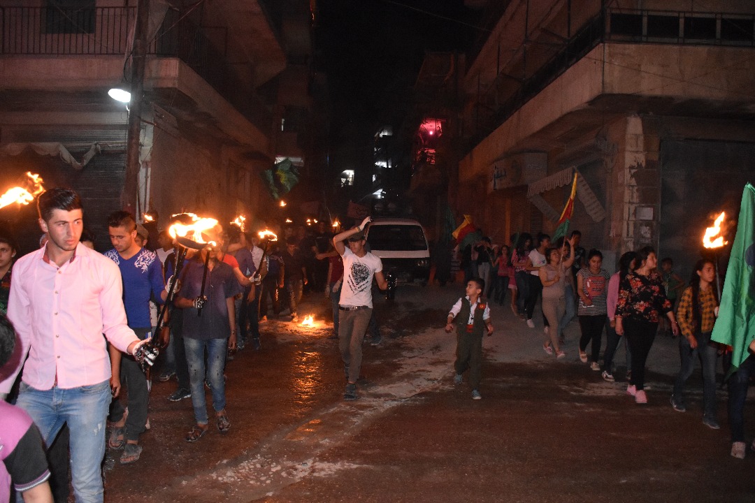HELEB – Meşa ku ji aliyê ciwanan hatibû organîzekirin bi dehan şêniyên taxa Şêx Meqsud jî tevlî bûn. Meş ji milê Rojava yê taxa Şêx Meqsud destpêkir û ber bi qada Rêberê gelan Abdullah Ocalan ve meşiya.