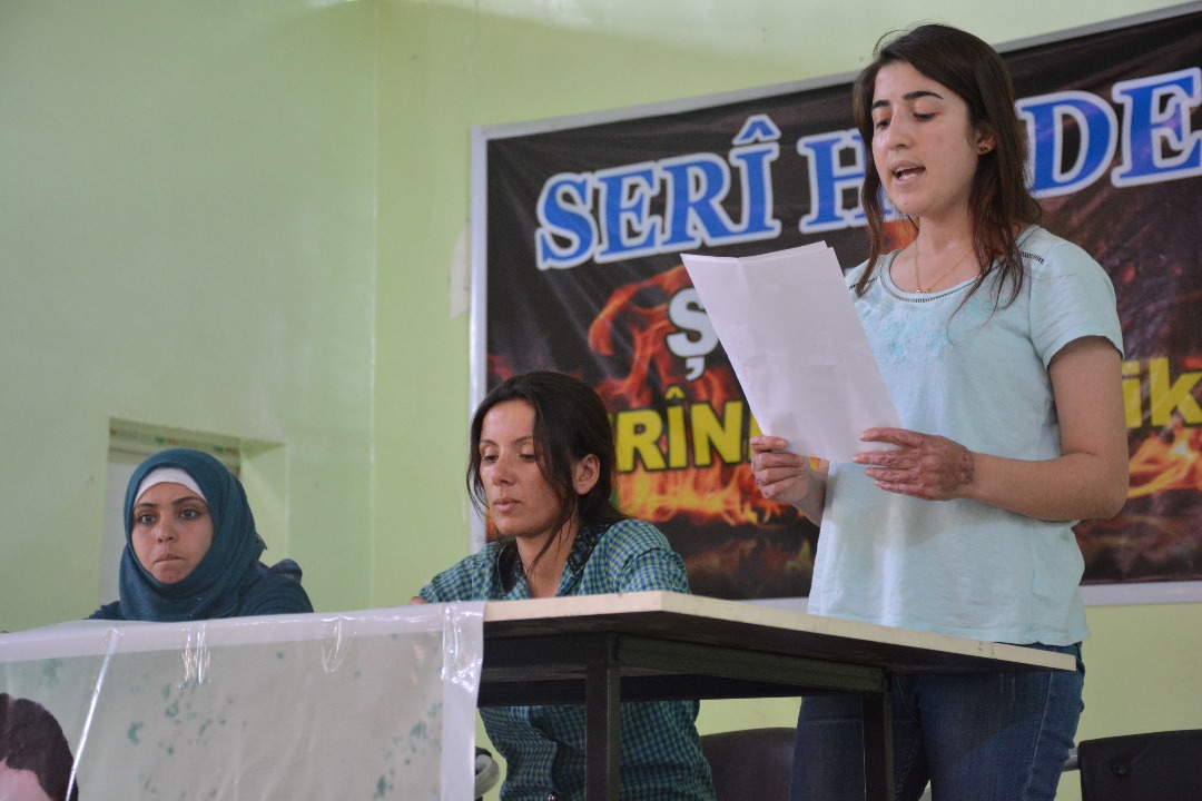 KOBANÊ – Di çarçoveya qonaxa duyemîn ya hemleya SERÎ HILDE de jinên ciwan yên kantona Kobanê ji bo şermezarkirina dagirkeriya dewleta Tirk li ser axa Başûrê Kurdistanê daxuyaniyek da. Daxuyaniya ku ji aliyê endama jinên ciwan Rohat Hecî Mehmûd ve hate xwendin wiha dibêje.