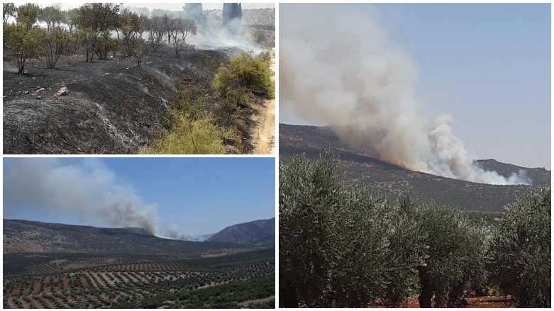 Heman çavkaniyê got: Agir her diçe firehtir dibe û di encama wê de bi hezaran darên zeytûn, hinar û darên din ên cur bi cur hatine şewitandin û metrisî li ser gundên nêzîkî agir heye.