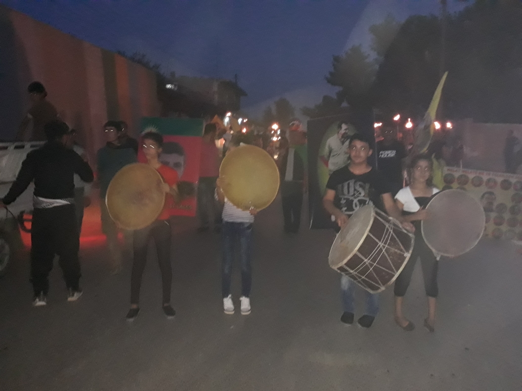 Ciwanên ku di nava kolanên navçeyê de geriya siloganên” Na ji dagirkeriya dewleta Tirk re” û ” ji bo Kurdistan şer” berzkirin. Meşa ciwanan li pêşiya navenda ciwanên navçeyê rawestiya û li wir daxuyaniyek hate dayîn.