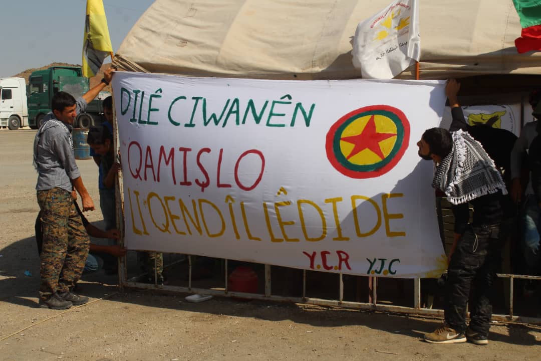 SÊMALKA – Çalakiya ku bi pêşengtiya Yekîtiya Ciwanên Rojava (YCR) û Yekîtiya Jinên Ciwan (YJC) di bin silogana” Ji bo Azadiya çar parçeyên Kurdistan SERÎ HILDE” hatiye li dar xistin berdewam dike. Di roja 6 mîn ji çalakiyê, ciwanên Qamişlo nivîsa” Dilê Ciwanên Qamişlo li Qendîl lêdide” li ser pankarteke nivîsandin û ew pankart bi konê çalakiyê vekirin.
