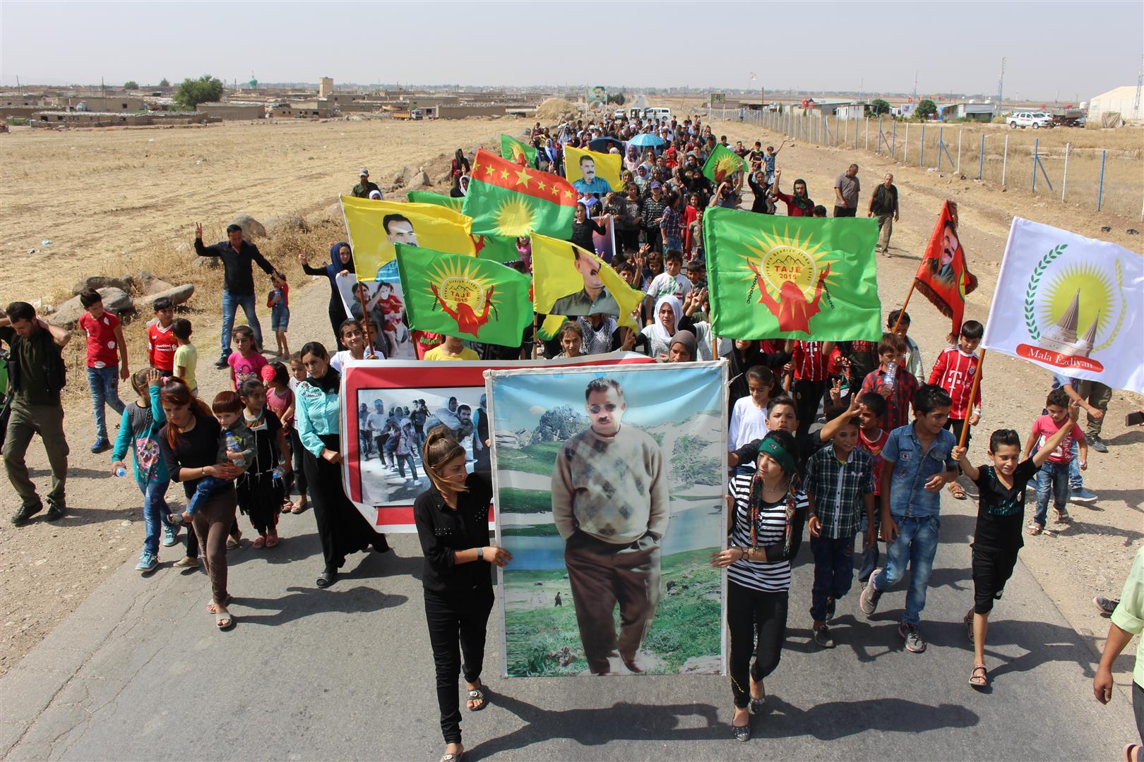 Şêniyên Kampa ya Newrozê Rojava ji bo qurbaniyên Qirkirina 3’ê Tebaxa 2014’an bi bîr bînin Li Kampa Newrozê li hev Civîyan.