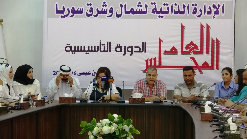Rêveberiya Xweser a Bakur û Rojhilatê Sûriyeyê roja 6’ê Îlonê li Eyn Îsayê ji aliyê Meclîsa Sûriyeya Demokratîk ve hatibû ragihandin. Sîham Qeyro û Ferîd Etî bûn Hevserokên Meclîsa Giştî ya Rêveberiya Xweser û dîwana meclîsê ya ji 5 kesan hatibû hilbijartin.