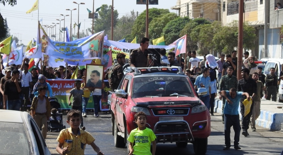 Di xwepêşandanê de her wiha endamên saziyên sivîl ên Rêveberiya Xweseriya Demokratîk beşdar bûn. Xwepêşanderan wêneyên Rêberê Gelê Kurd Abdullah Ocalan, alên Yekitiya Ciwanên Rojava, YPG, YPJ û QSD’ê bilind kirin.