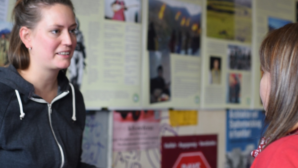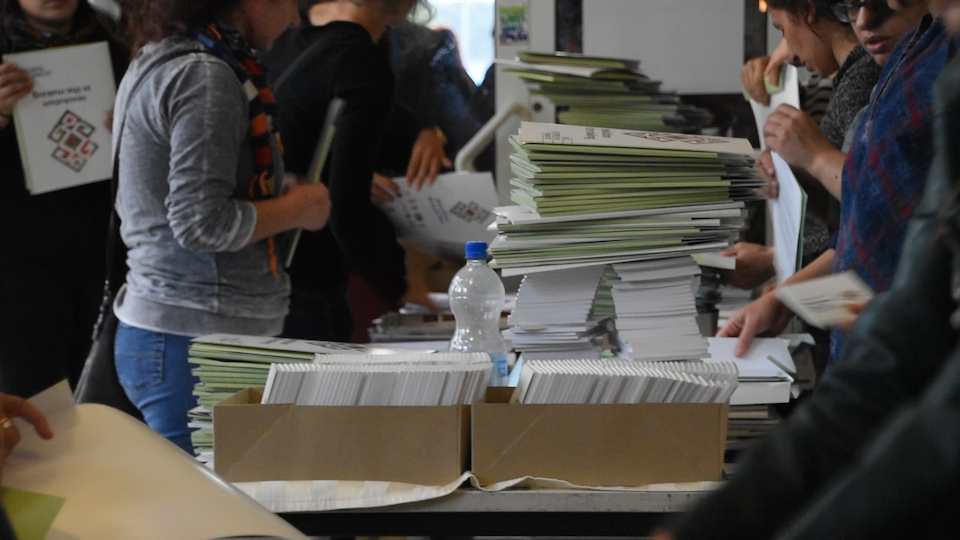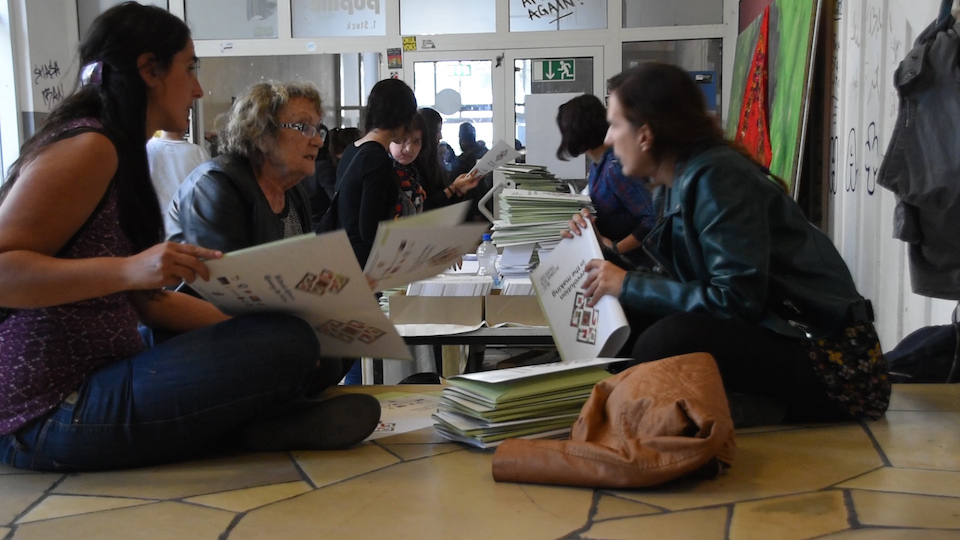 Amadekariyên Konferasa enternasyonalîst ya jinan dimeşin. Ji bo konferansê jin qala naverok û