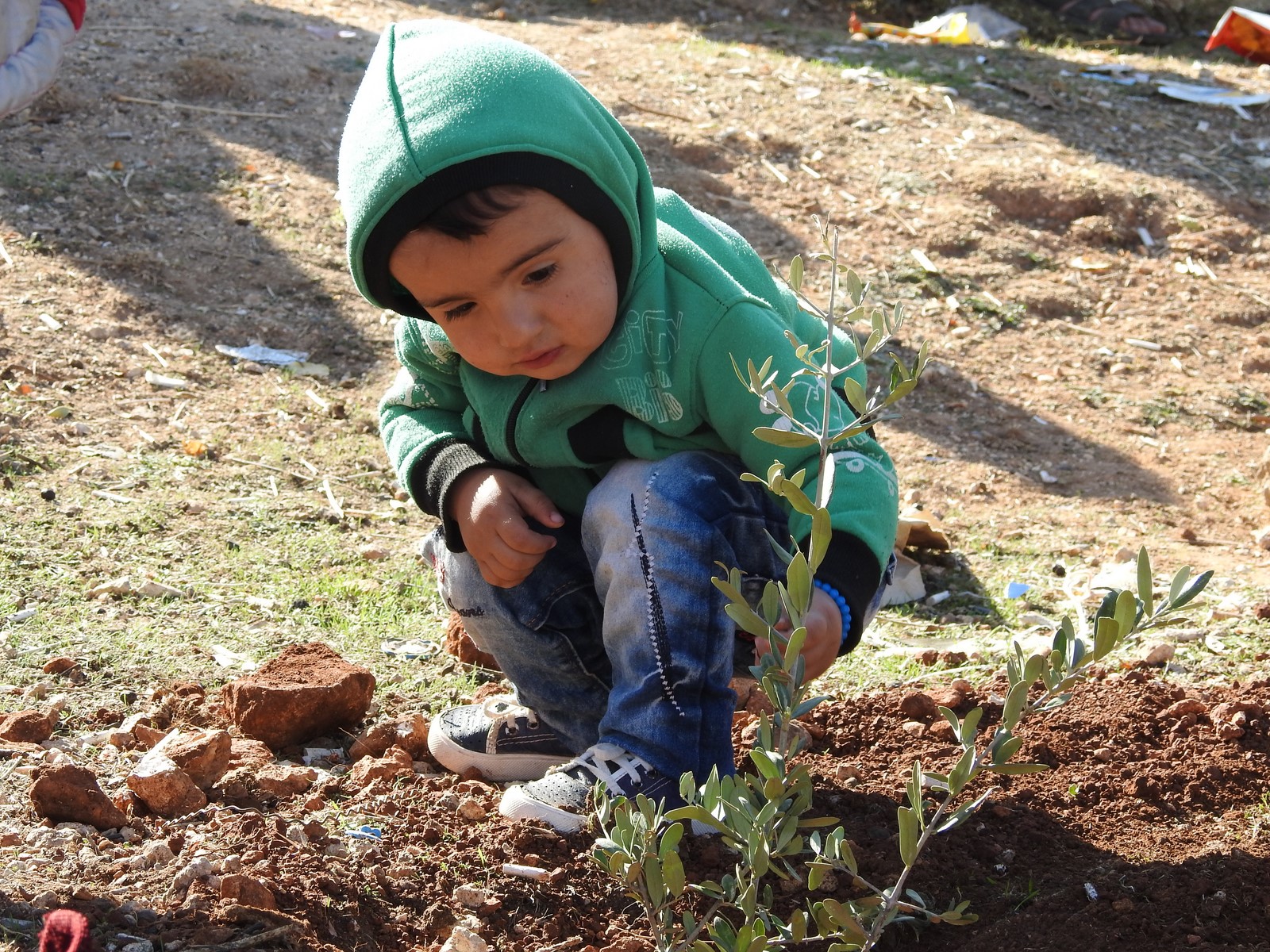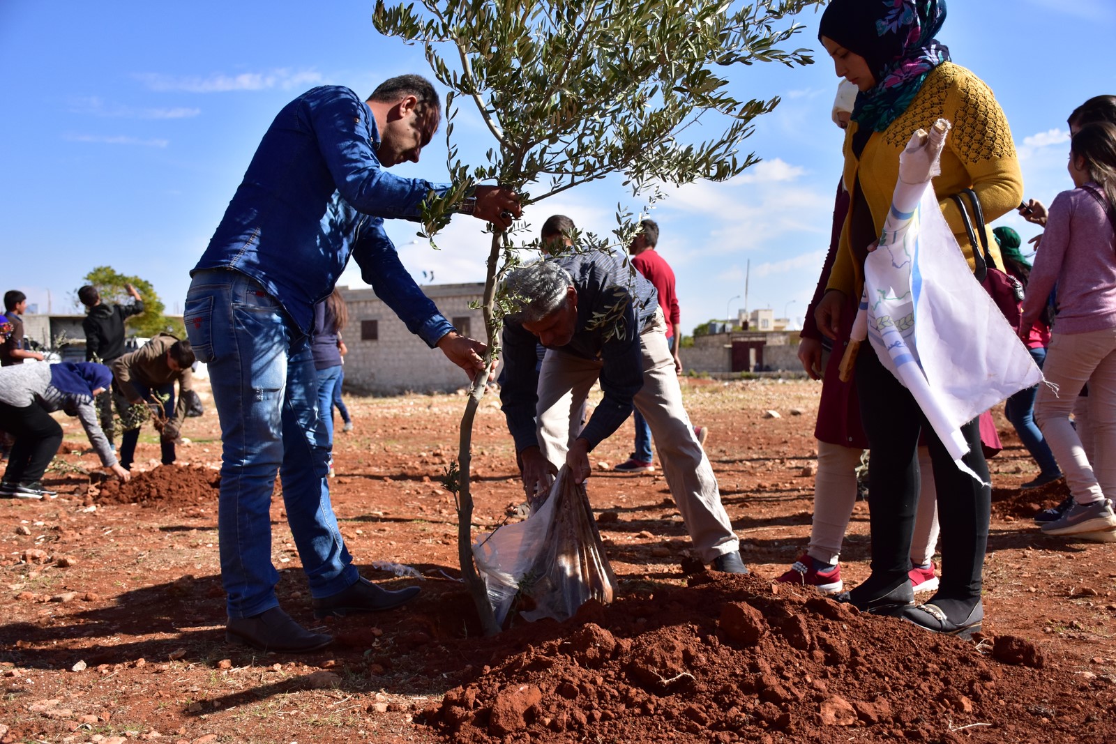Piştî axaftinan, beşdarên mîhrecanê bi mezin û biçûkan 50 darên zeytûnana li qada gundê Eqîbe çandin.