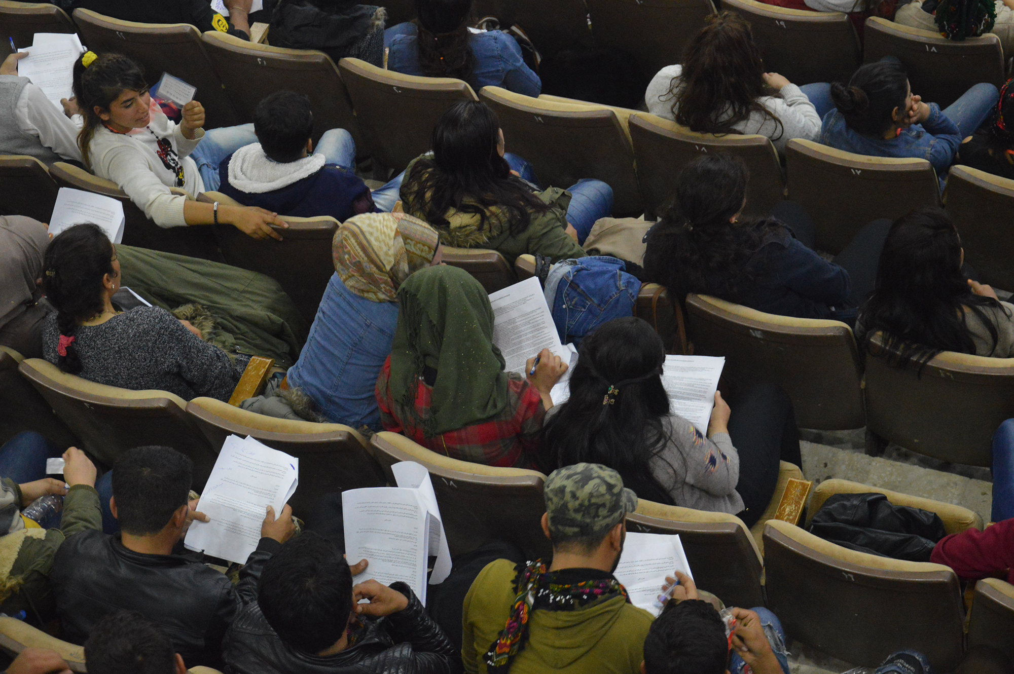 Yekîtiya Jinên Ciwan ên Qamişlo bi xwendekaran derbare Rêber Apo nîqaş dikin