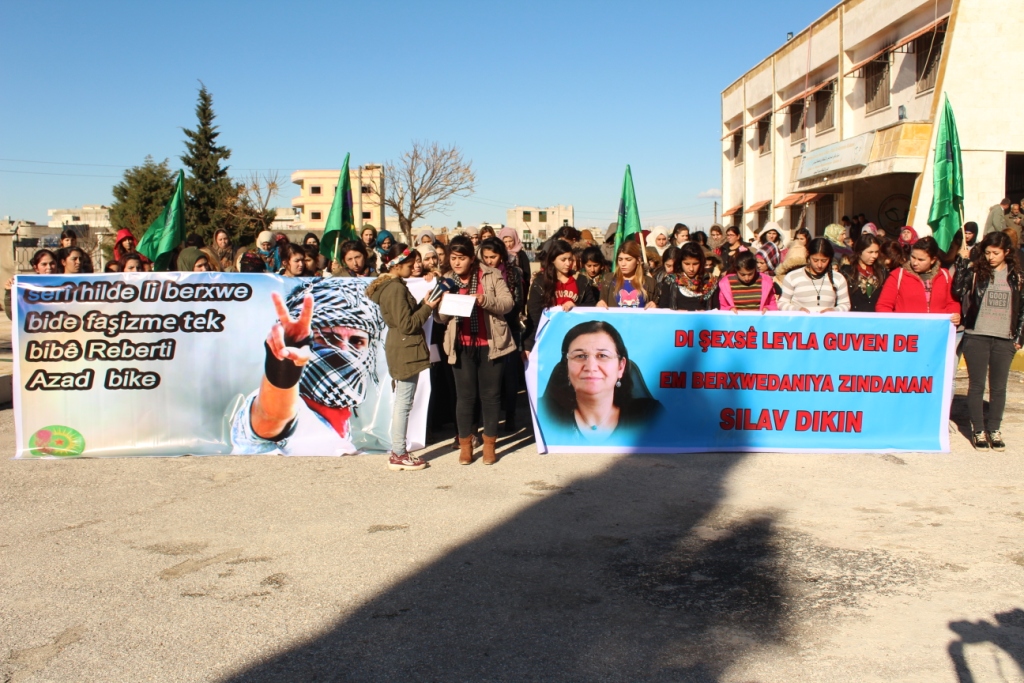 Em dibêjin ji bo hemû hevalên di çalakiyê de û ji heval Leyla Guvan re; tu ne bi tenê yî, em ê dengê te, xwesteka te li hemû cîhanê belav bikin û em soza vê didin ku em wek jinên ciwan ên Rojavayê Kurdistanê qiyametê rakin û serkeftinê mîsoger bikin.”