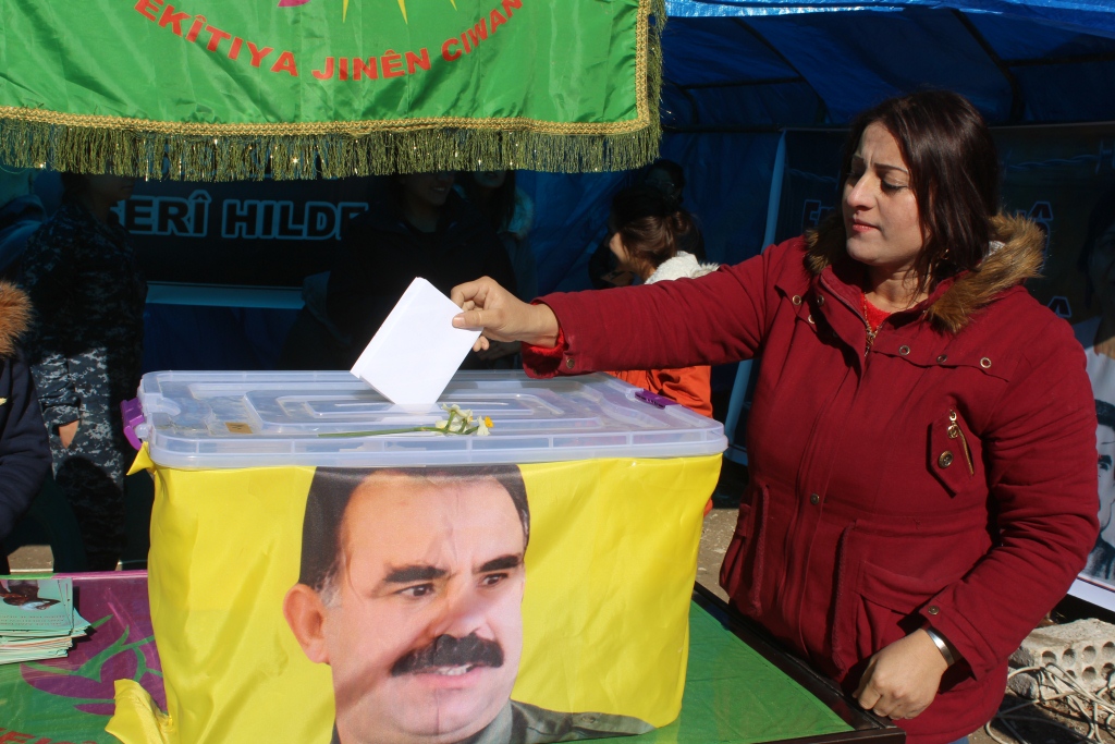 Di bin konê çalakiyê de wêneyên Rêberê Gelan  Abdullah Ocalan û yên parlamenter Leyla Guven hatin hildan. Bi sedan şêniyên navçeyê tevlî konê çalakiyê bûn.