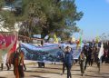 Meş li ber navenda Ciwanan de destpêkir. Ciwanan bi dirûşman dimeşin. Hersa Efrînê di meşê de xuya dike.