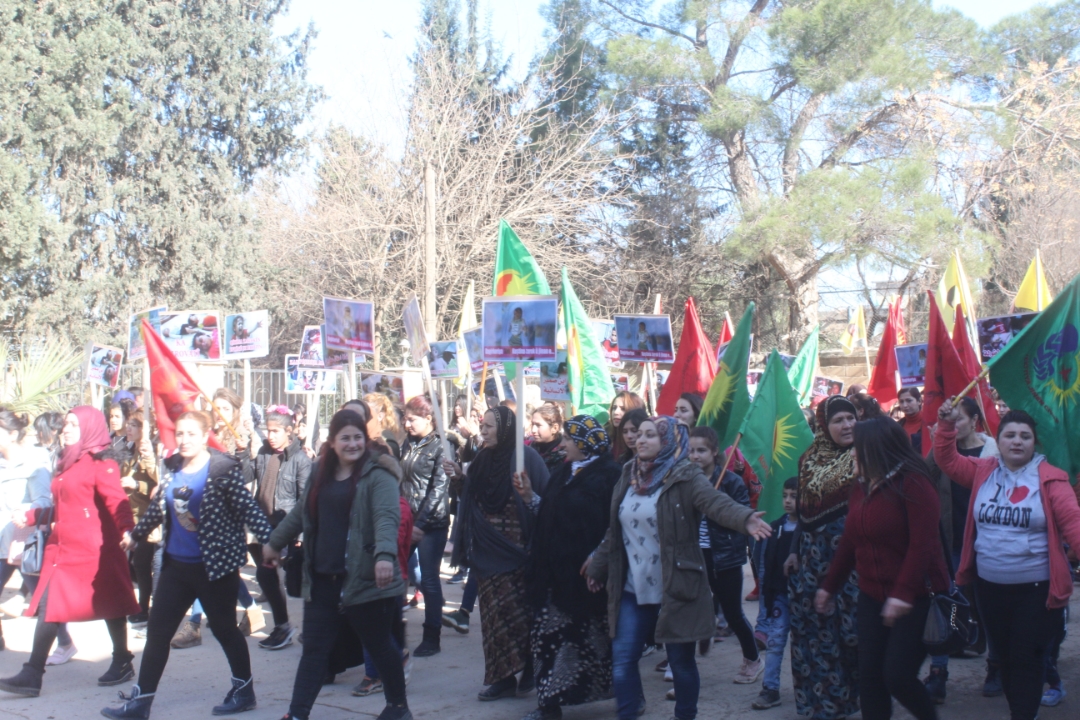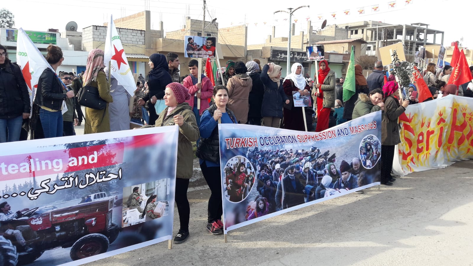 Bi hezaran şêniyên Hesekê di pêşengtiya Tevgera Ciwanên Şoreşger de bi boneya şermezarkirina yekemîn salvegera êrîşên dewleta Tirk û çeteyên wê yên li ser Efrînê daketin qadan û gotin: “Em ê Efrînê rizgar bikin.” Di heman demê de meşa ciwanan de tecrîd hate şermezarkirin û bal kişandin ser rewşa Leyla Guven.