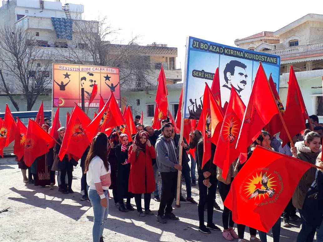 Girseya gel dirûşmên “Bijî berxwedana Efrînê”, “Bijî Serok Apo”, “Bimire dagirkerî, bijî azadî” berz kirin.