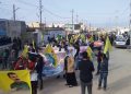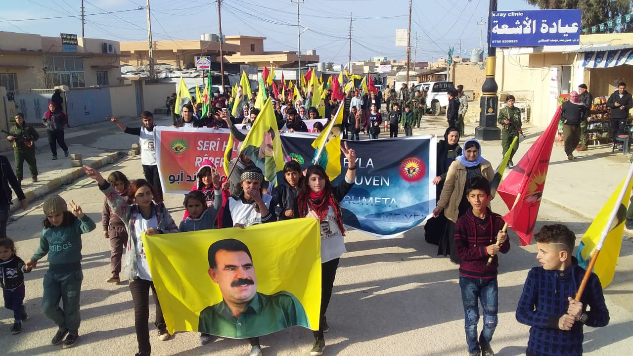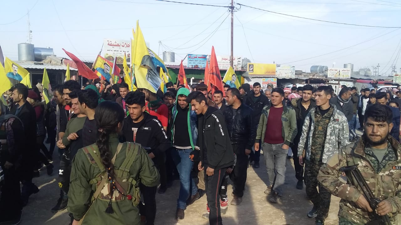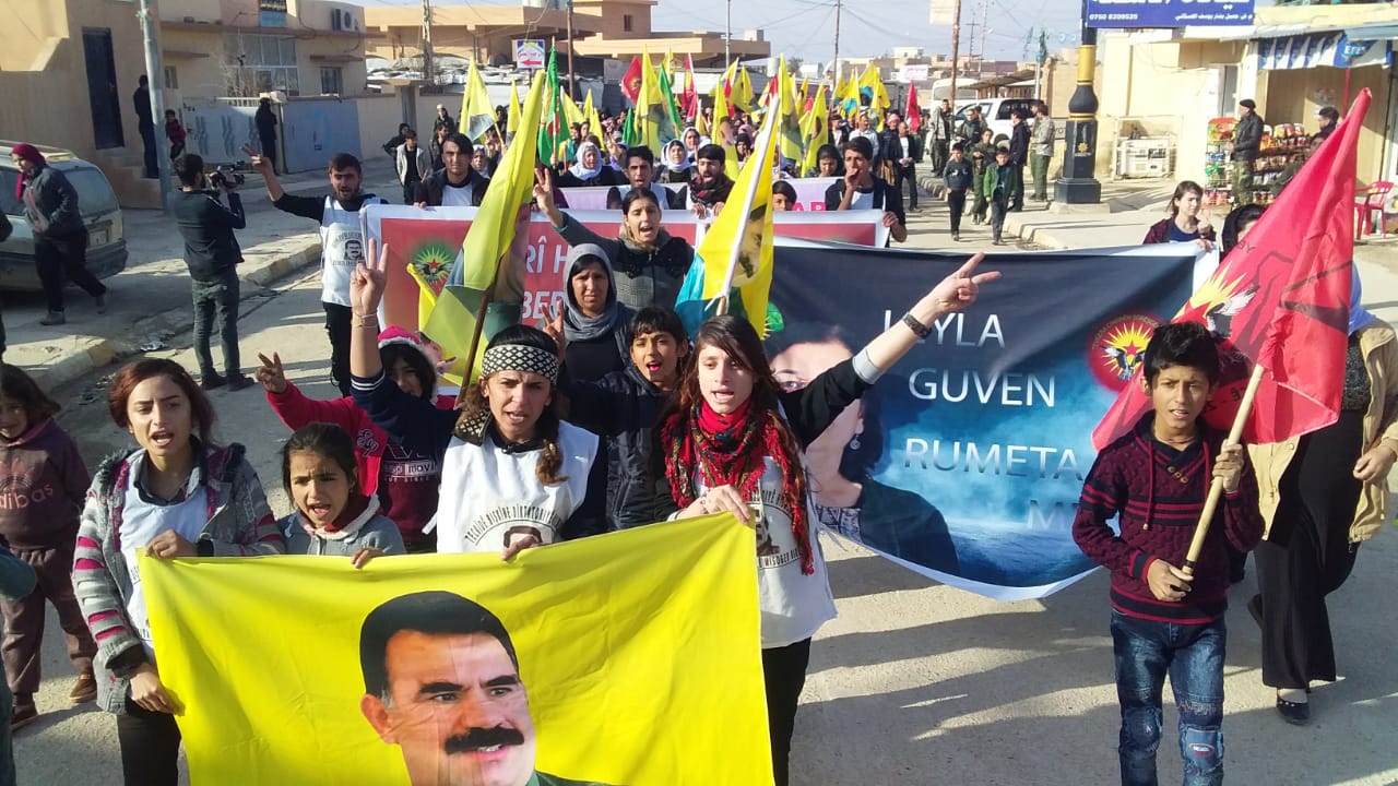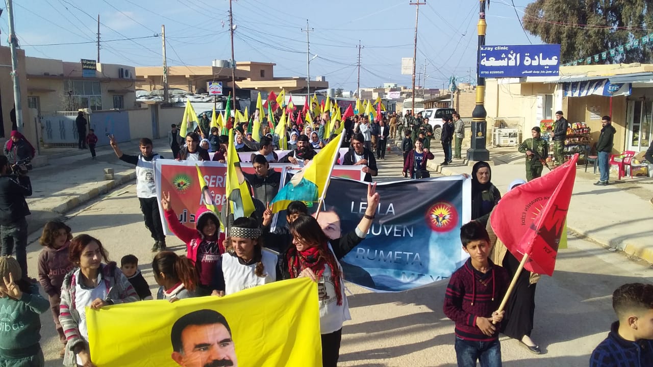 Meş li ber Meclîsa Sinunê destpêkir û heya ber saziya Ziratê berdewam kir. Panqartên, ”Serî Hilde şer bike Rêber Apo azad bike” û “Leyla Guven Rumea me ye” hate vekirin.