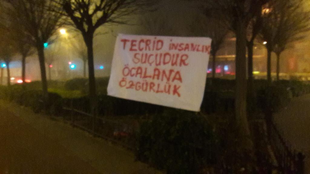 Li navçeya Stenbol Sancaktepeyê, li hemberî tecrîdê, ciwan daketin qadan û panqartên “Tecrîd Sucê Mirovahiyê ye“ û “Ji Ocalan Re Azadî“ nivîsandî daliqandin.