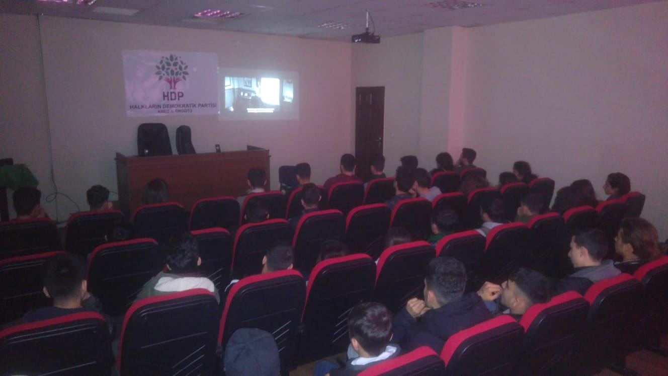 NAVENDA NÛÇEYAN- Endamên Meclîsên Ciwanên HDP a Amed’ê û Ciwanên Liseyê li avahiya HDP a navçeya Yenîşehîr’ê fîlma 14 Tirmeh’ê temaşe kirin. Ciwanan vê faliyetê ji bo xwe rêxîstin bikin û bal bikşînin li ser çalakiyên greva birçîbûnê li dar xistin.