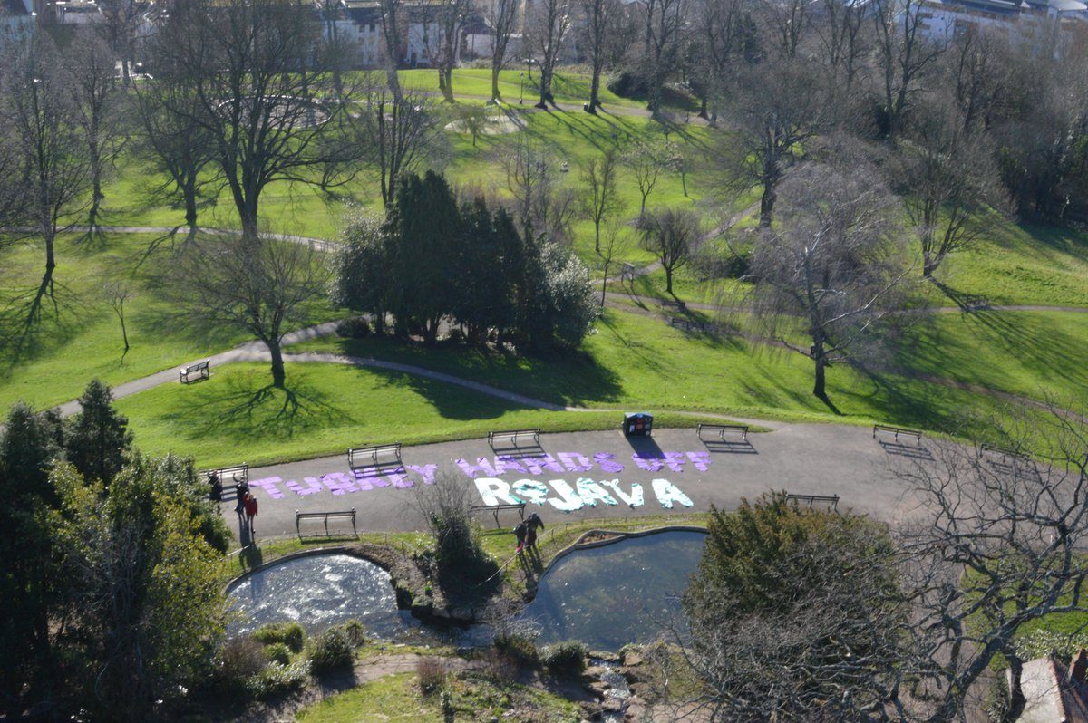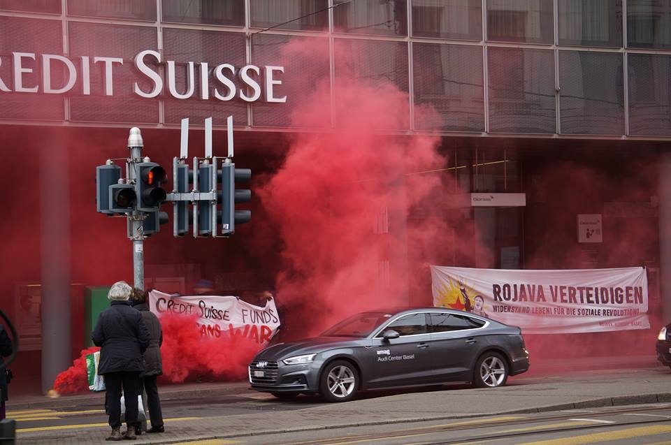 – Li bajarê Basel ê Swîsreyê, li ber navenda Credît Sûîsse ku desteka fînansê dide dewleta Tirk pankarteke mezin a bi nivîsa ‘Şoreşa Rojava biparêze’ hate vekirin.