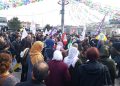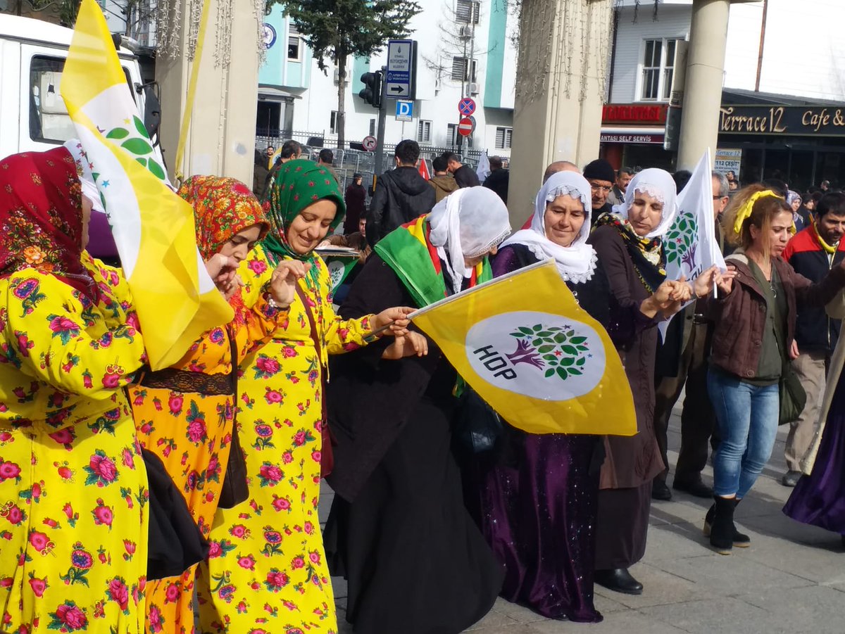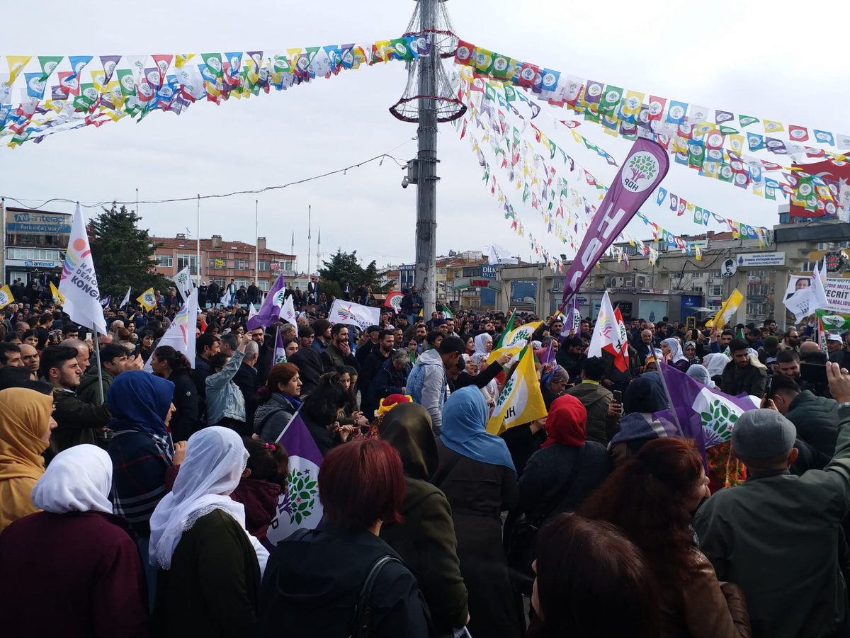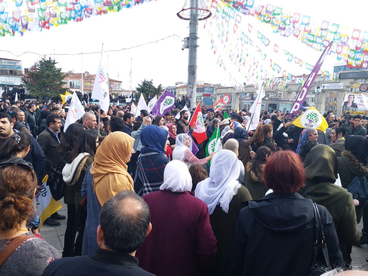 Gel bi wesayitên ji ber avahiyên HDP’ê yên navçeyan radibin, berê xwe didin qada mîtîngê. Li qadê platformeke mezin hatiye avakirin û pankarta bi nivîsa “Leyla Guven mafdar e, tecrîd divê bi dawî bibe” hatiye daliqandin.