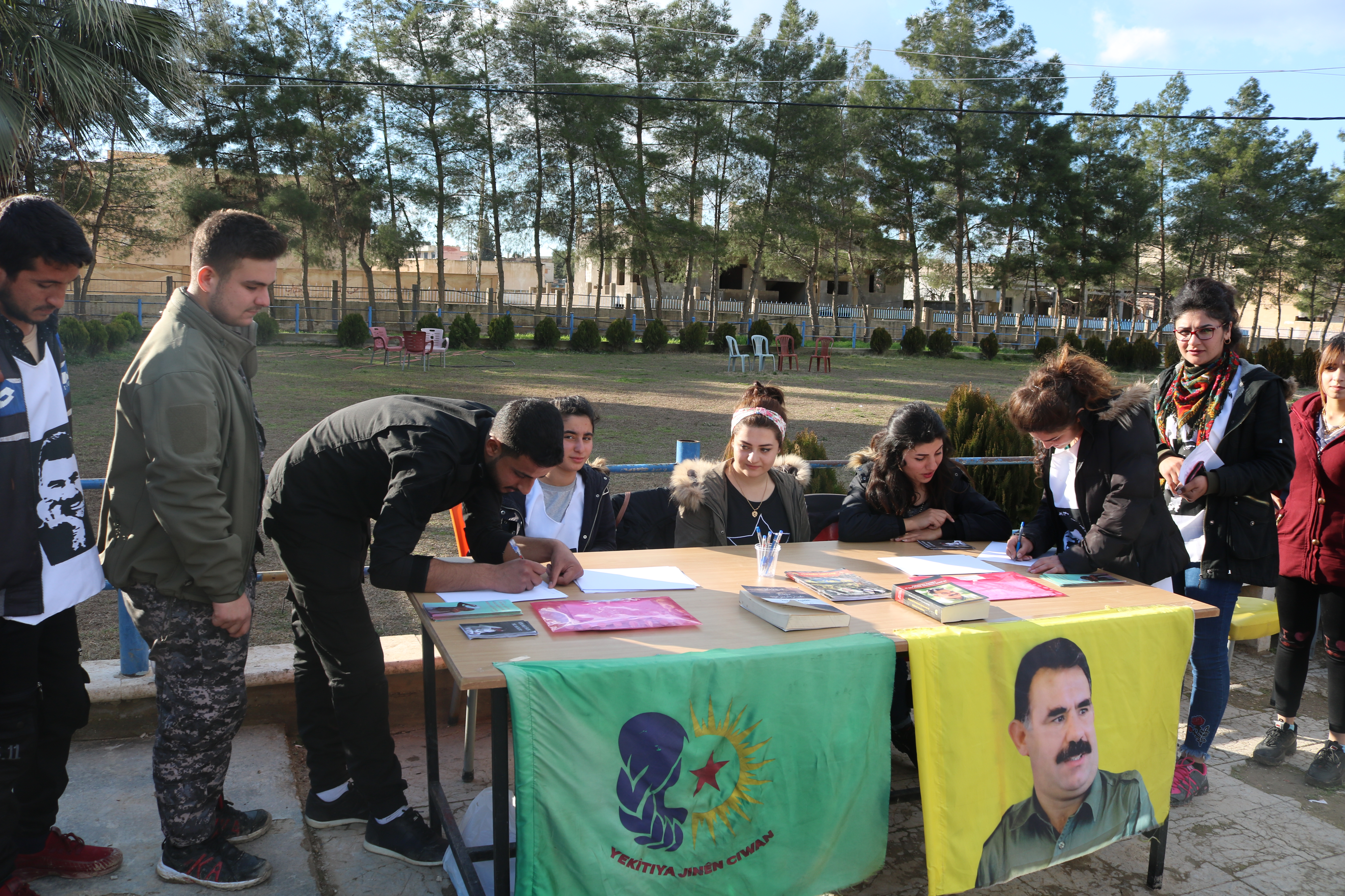 • Yekîtiya Jinên Ciwan ên Qamişlo bi xwendekaran derbare Rêber Apo nîqaş dikin