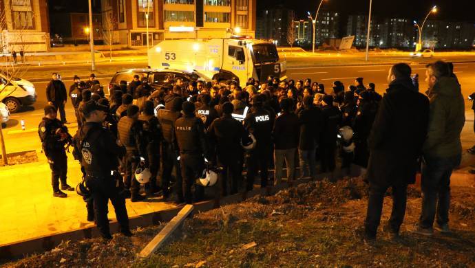 Polîsan bi mudaxelekirinê gefan li komê xwar. Tevî vê yekê jî komê silogana“Leyla Guven rûmeta me ye” gotin û bi lêdana çepikan piştevaniya xwe dan nîşandan. Di vê navberê de welatiyên derdorê jî bi çalakiya deng derxistinê piştgirî dan Leyla Guven.
