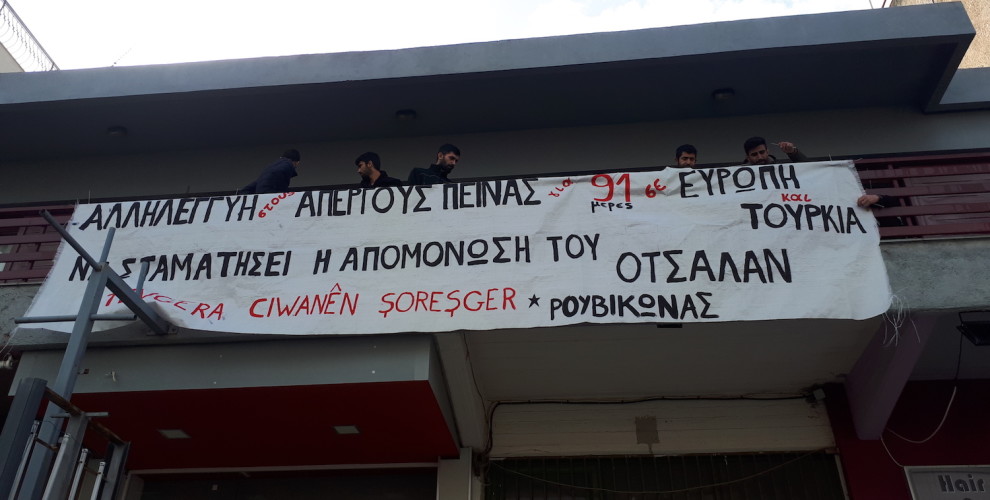 ATÎNA – Ciwanên Kurd û Ciwanên Anarşîst ên Yunan li dijî tecrîda giran a li ser Rêberê Gelan Abdullah Ocalan û ji bo piştgiriya çalakiya grevên birçîbûnê şîrketeke lojîstîka Tirk-Yunan dagir kiribûn.