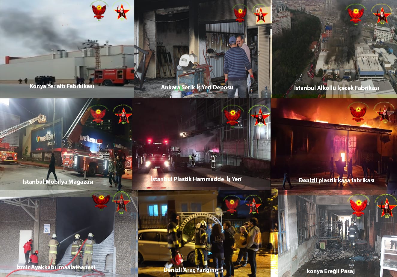 Koordînasyona DGH’ê; Ji aliyê yekineyên me ve ji bo rakirina tecrîda giran a li ser Rêber Apo li bajarên Tirkiye’yê çalakî hat li dar xistin. Di 20 çalakiyên pêkhatî de 6 febrîqe, 18 kargeh, 3 wesayît û 2 depo dan ber agir û hat îmha kirin.