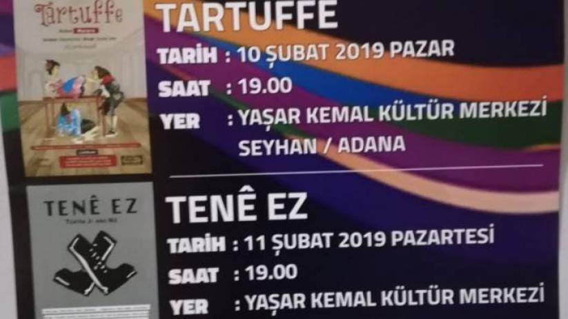 EDENE –Rêxistina Partiya Demokratîk a Gelan (HDP) ya Edeneyê bi dirûşma “Li dijî polîtikayên qirkirina çandê em hunera azad mezin dikin û serî hildidin” xwest ku rojên şanoyê li Navenda Çandê ya Yaşar Kemal a Şaredariya Seyhanê li dar bixe. Lê ev yek ji aliyê walîtiya Edeneyê hat qedexekirin. HDP’yan ji bo lîstikên “Tartuffe”, “Tenê Ez”,”Kozik” li dar bixin serî li walîtiya Edeneyê da. Lê ev yek ji aliyê walîtiyê ve nehat qebûlkirin.